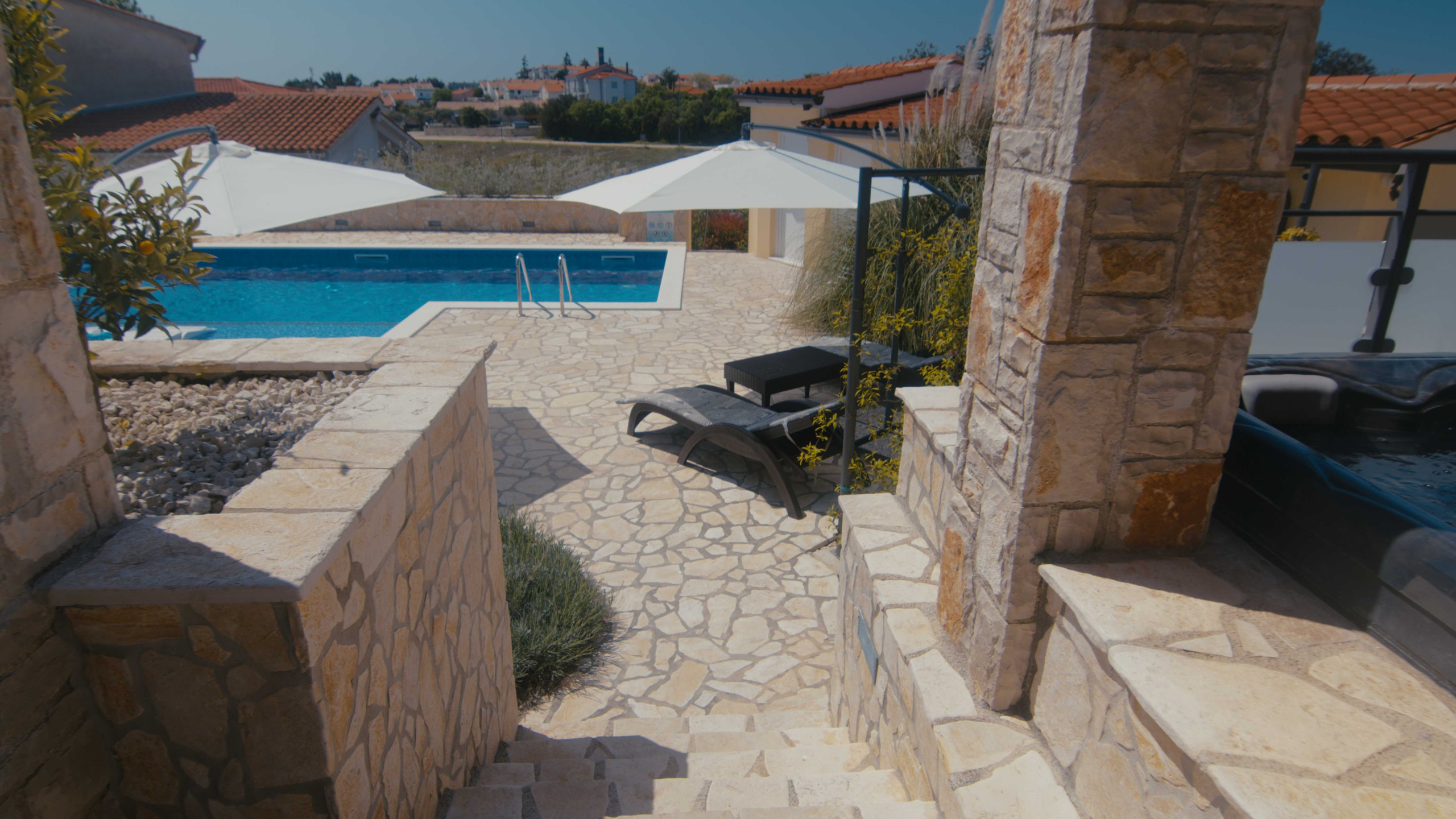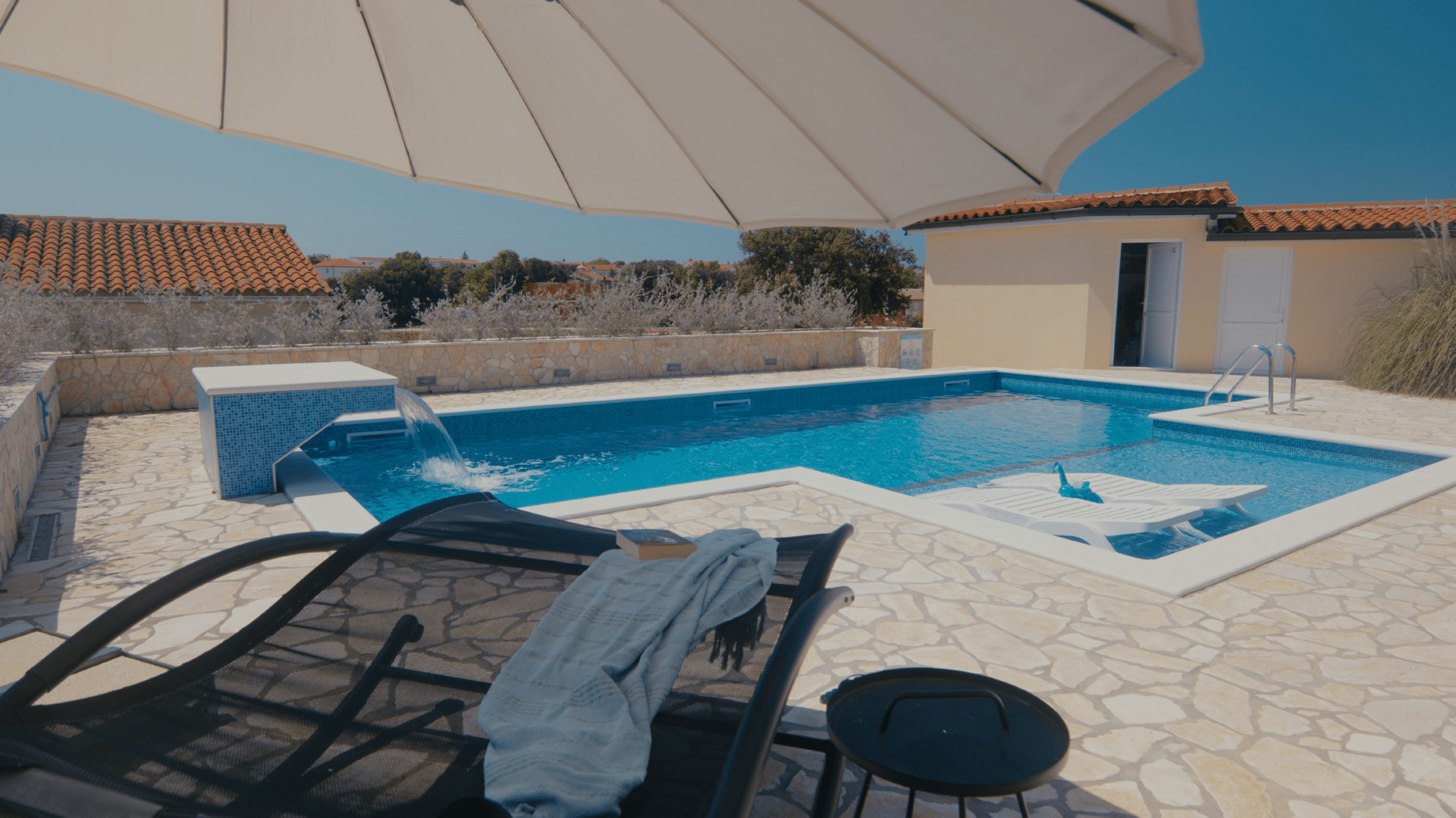 The beautiful Villa Kalista Istriana is the perfect choice for a wonderful family holiday by the sea. In front of the villa there is a large private pool where you can enjoy sunny days with your loved ones. In the garden you will also find a covered terrace with a barbecue and dining table, where you will enjoy the romantic atmosphere on summer evenings with family and friends. A highlight is definitely the jacuzzi on the covered terrace, where you can relax. The house is equipped with 8 sun loungers and 2 sun umbrellas. The terrace is planted with 150 different plants. It is away from the main road and very quiet place. The pool size is 48 m2. For our guests we have 4 bikes at disposal. There is a garage and two private parking spaces on the property. The internet speed is 30-50 mbit.