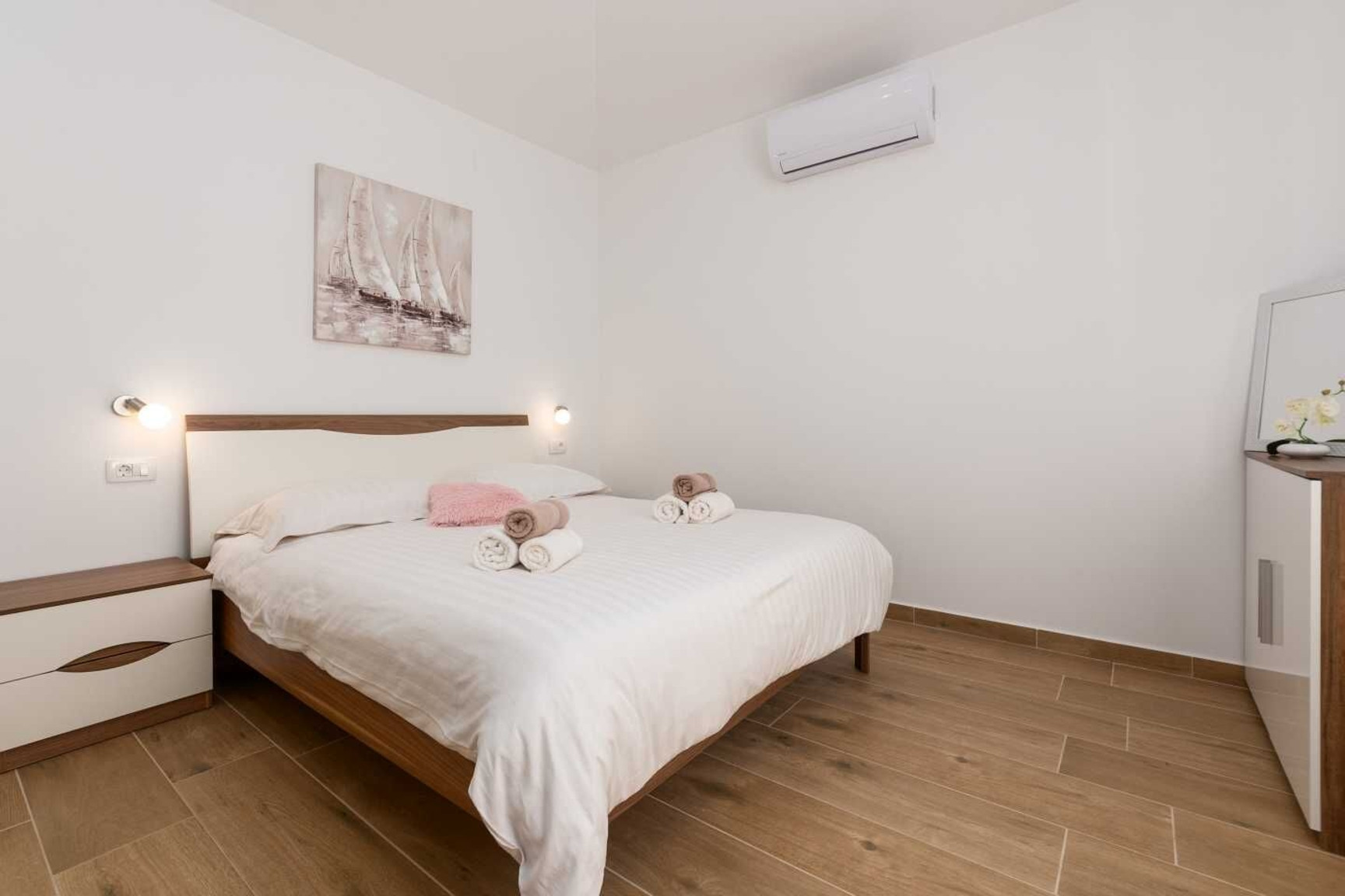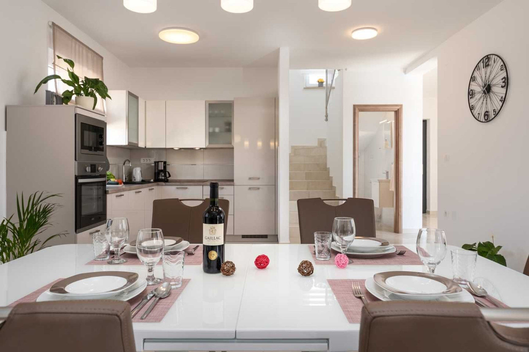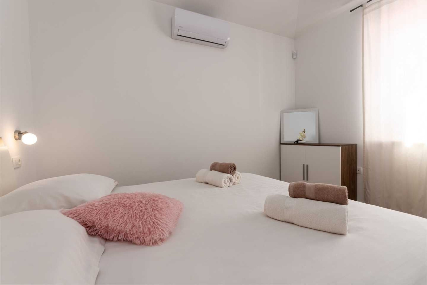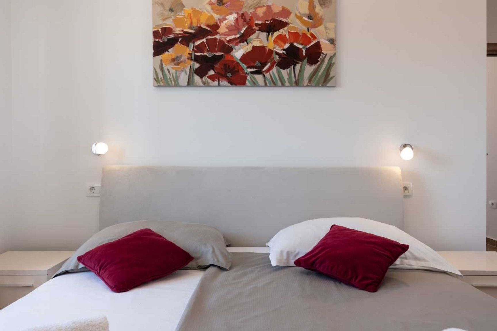 Perfect for 6+2 guests, the villa features 3 bedrooms with double beds, 1 sofa bed in the living room, 3 bathrooms with showers, and 1 additional guest WC.