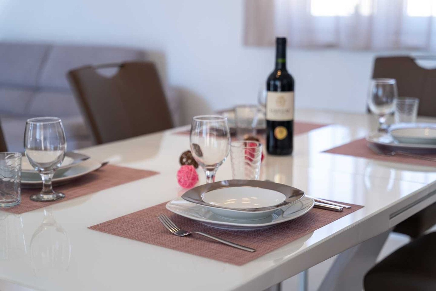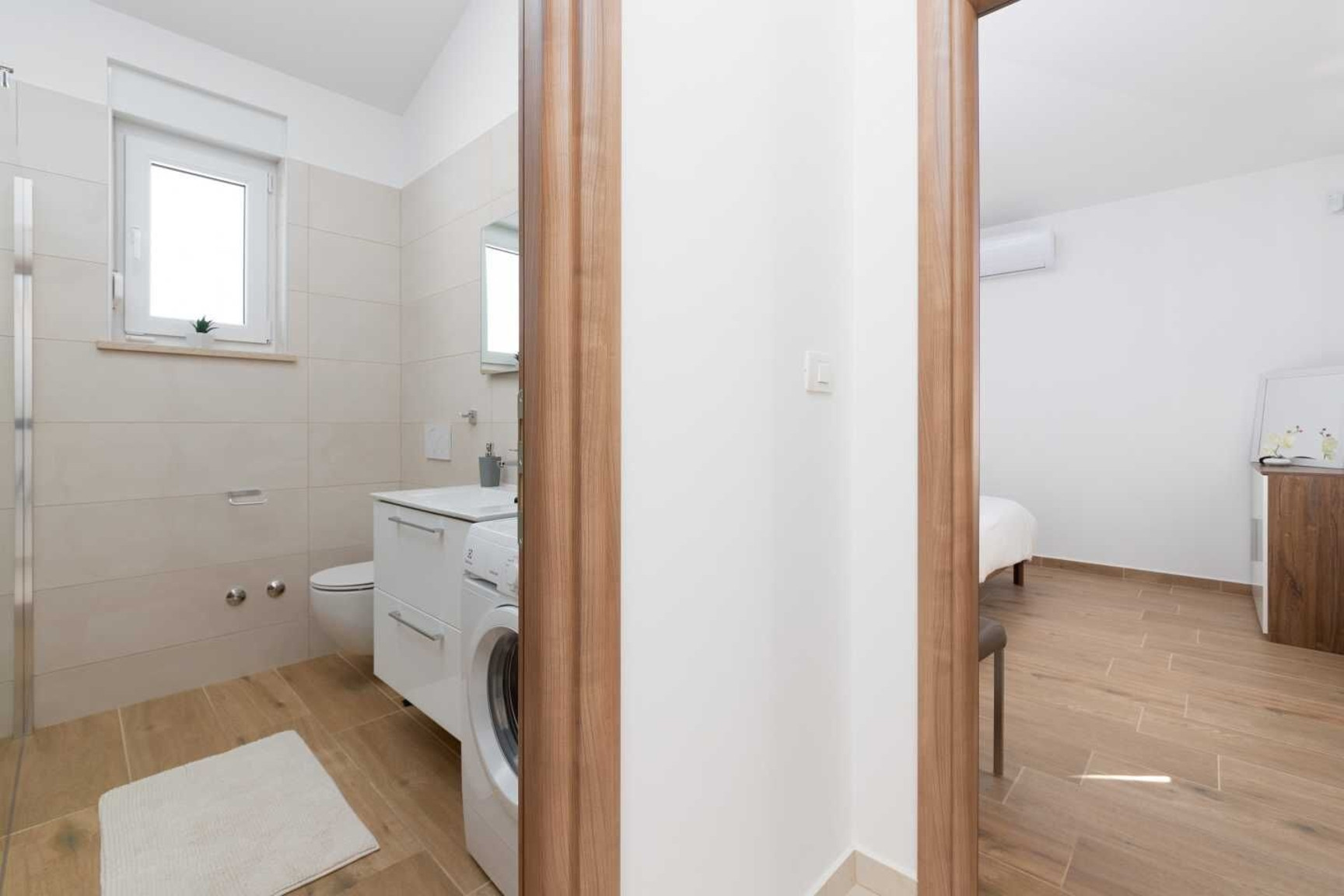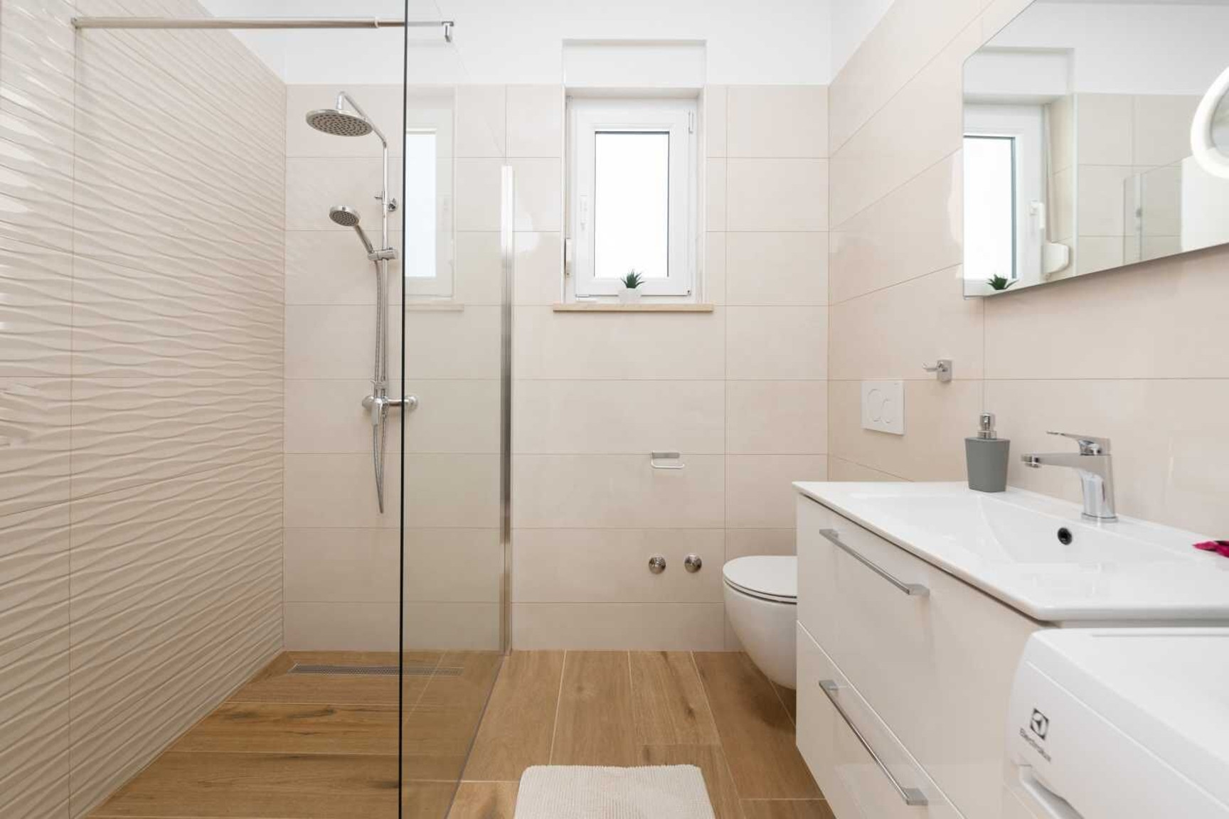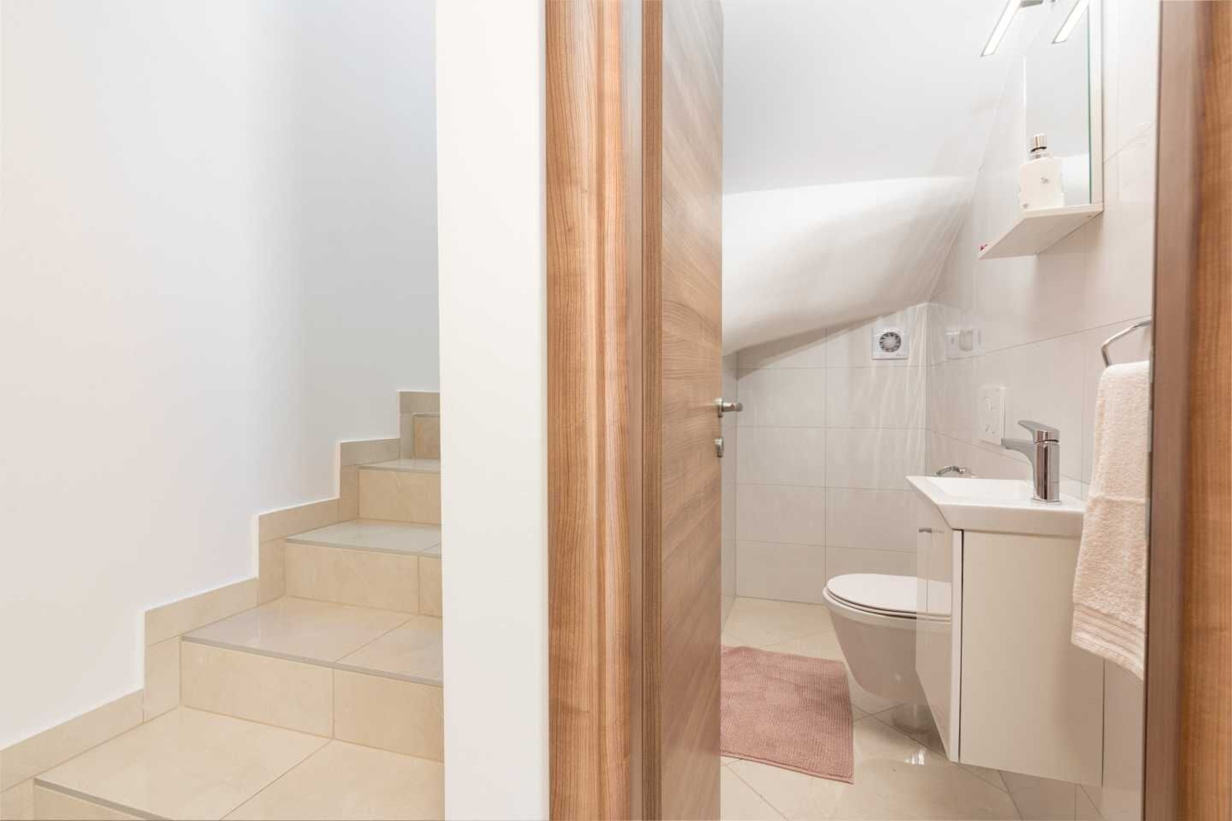 Villa Korat is a beautiful vacation home in Divšići, central Istria. It can host up to 8 people, with an extra option for a baby under 3 years old. The villa has 4 cozy bedrooms, each with a double bed, and 6 modern bathrooms for your comfort.