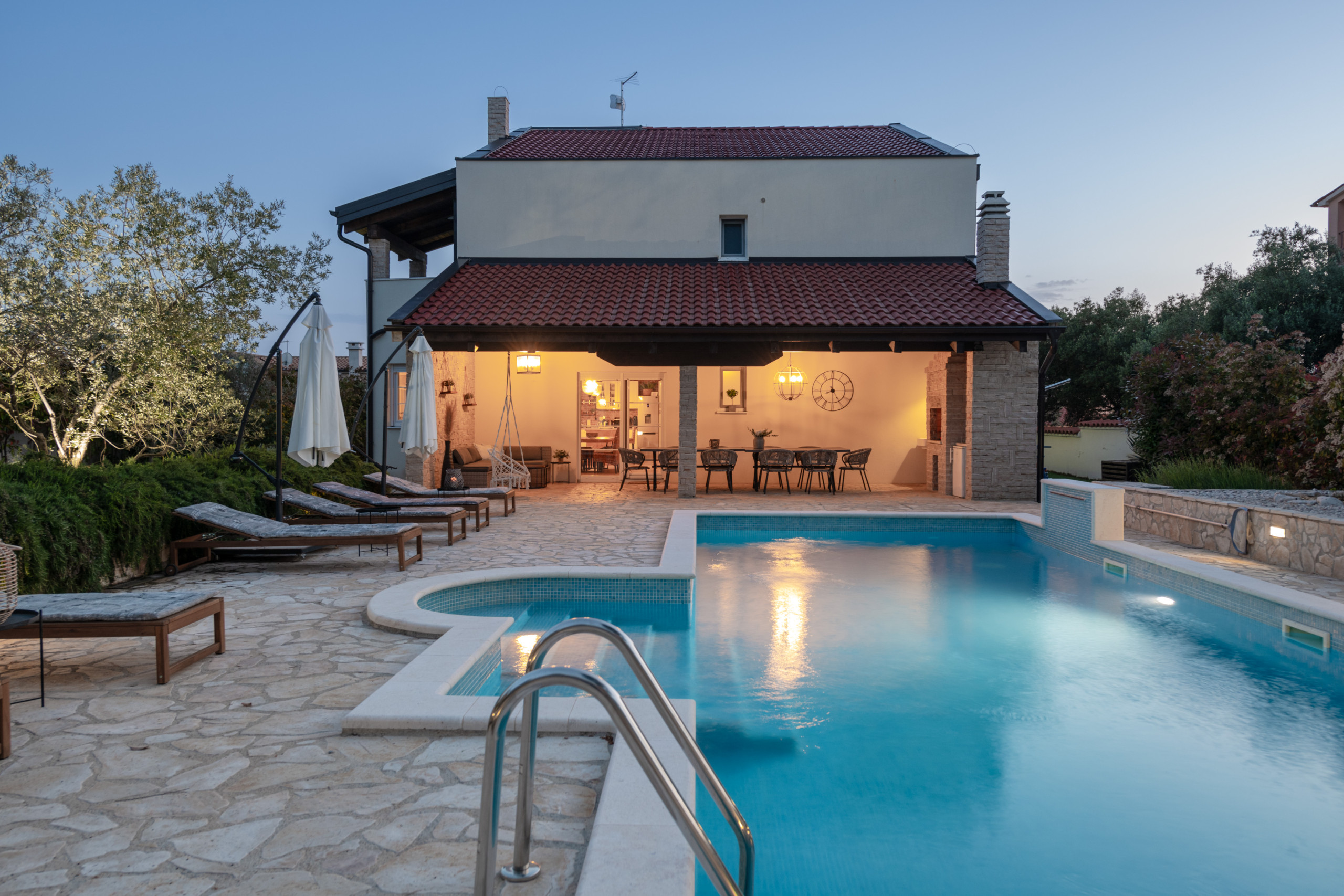 The covered outdoor grill tempts you to cook delicious meals at any time of the day. There is a swimming pool of 40 m2 surrounded by sun loungers and from the terrace you can enjoy a beautiful view of the sea and the beautiful Brijuni Islands.