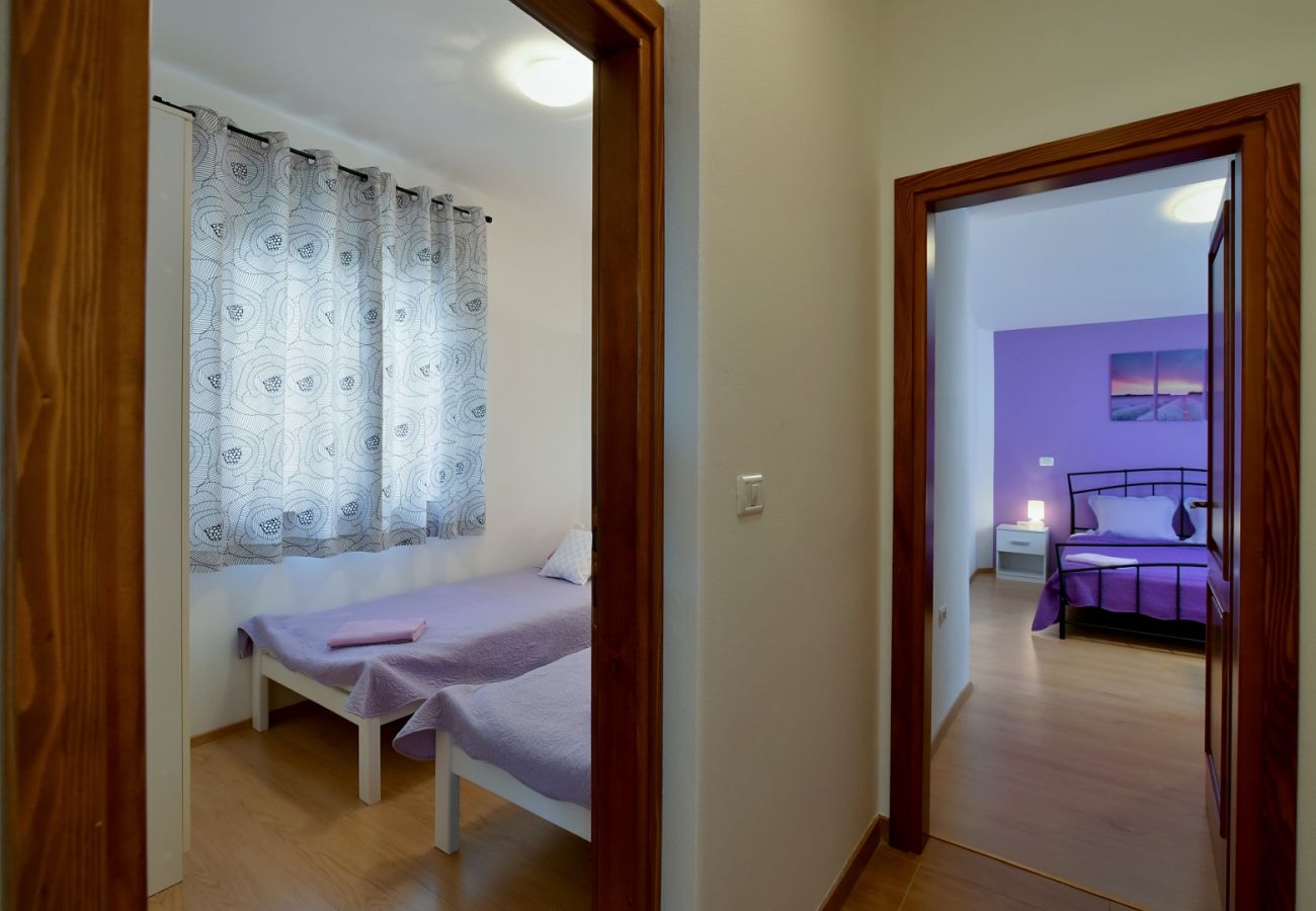 Villa Pietra can accommodate up to 6 guests, making it ideal for families, couples, or a small group of friends. The villa features two bedrooms – one with a comfortable double bed, and the other with two single beds, perfect for children or friends. In the living room, there is an additional sofa bed that can sleep two more people. The villa has one modern bathroom with a shower, and also a separate toilet for extra convenience.
