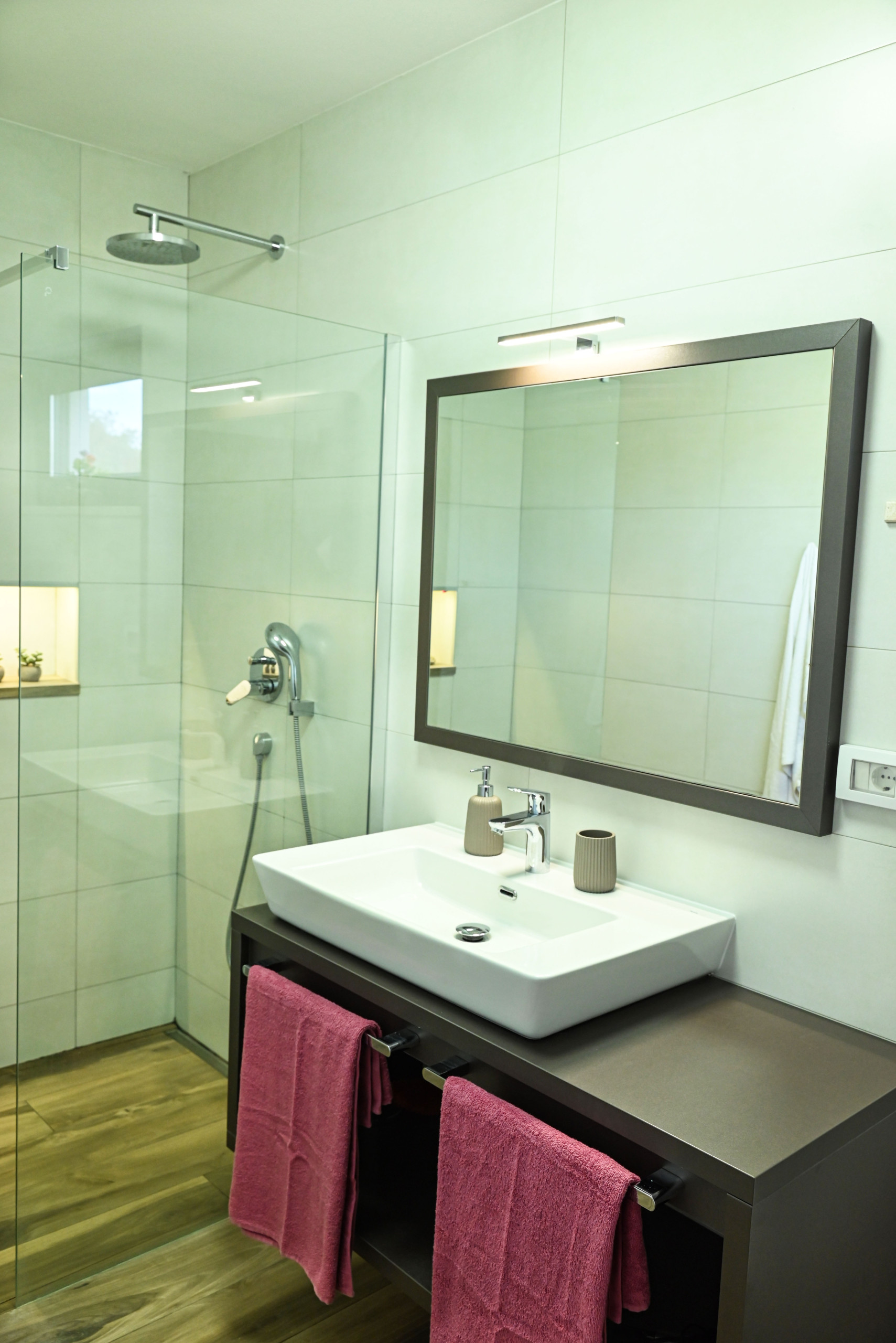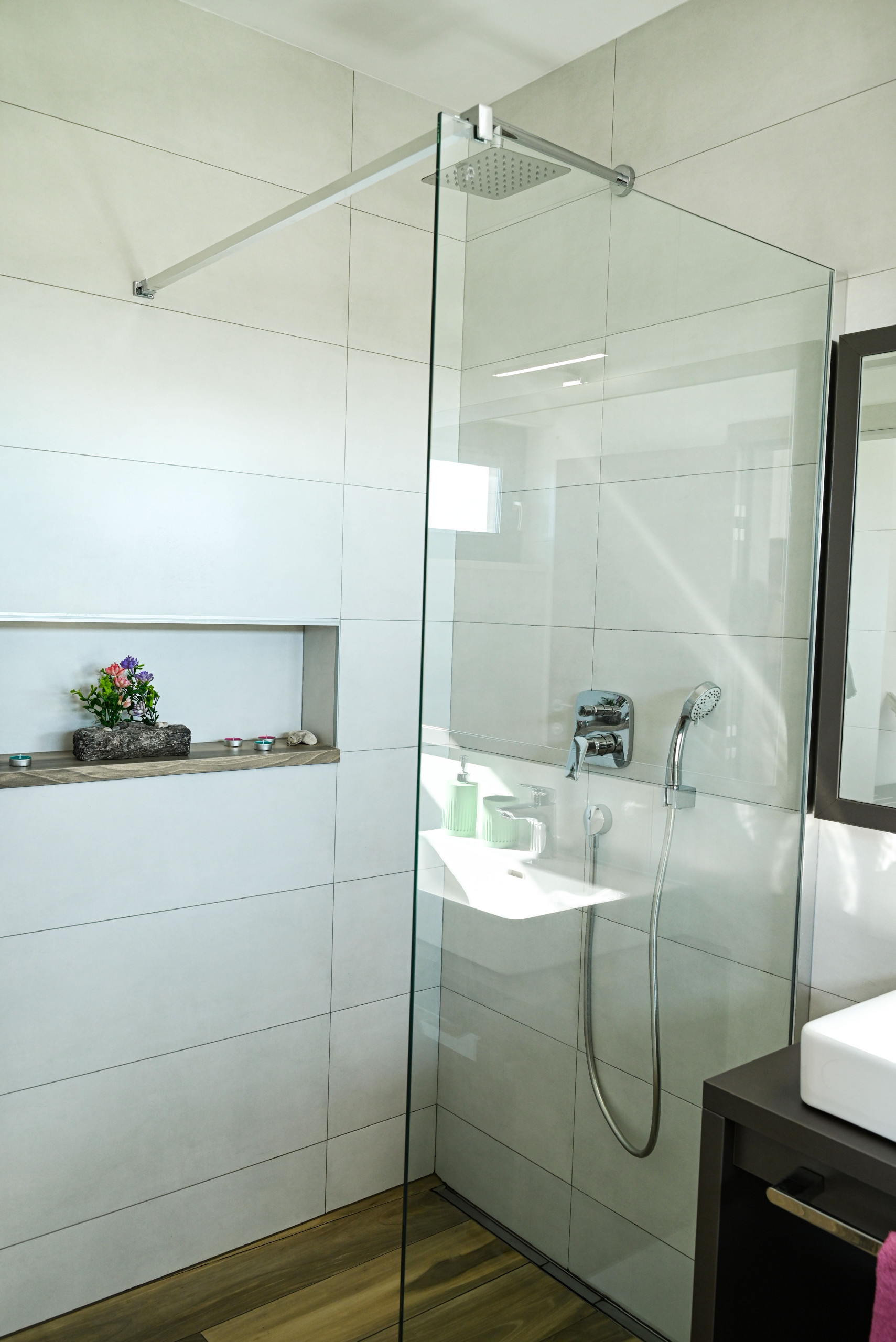 The villa has 5 bedrooms with 4 bathrooms, a cozy living room with an open kitchen and a separate own dining room. The whole villa is air-conditioned. There is also underfloor heating for colder days and pool heating on request.