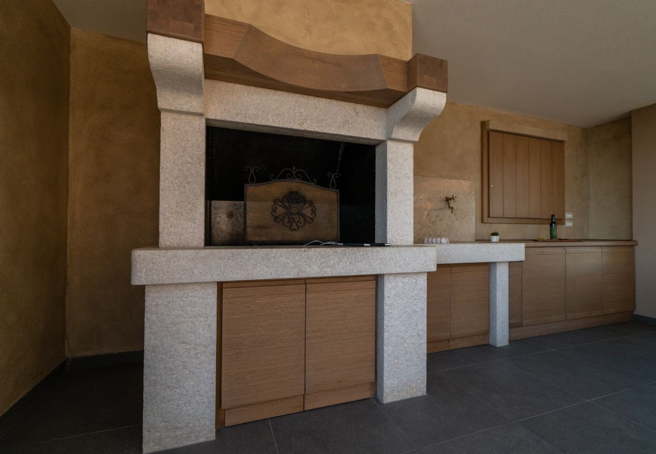On the ground floor you will find a spacious and elegant living room with a fireplace connected to the dining area and a fully equipped kitchen. The terraces offer a beautiful view of the pool and the surrounding area. From the living/dining area you have direct access to the 50 m2 private pool. The outdoor area also features a covered summer tavern with a barbecue and an outdoor dining area where you can enjoy a relaxing summer evening with local delicacies. The entire outdoor area and pool are illuminated at night. There is a children's playground in the garden. There are also various activities for guests to choose from. Outdoors there is a volleyball net and a five-a-side football, as well as a trampoline for our young guests. The villa also has a leisure room with billiards and table tennis. If you would like to explore the area, we have 6 bikes available for you.