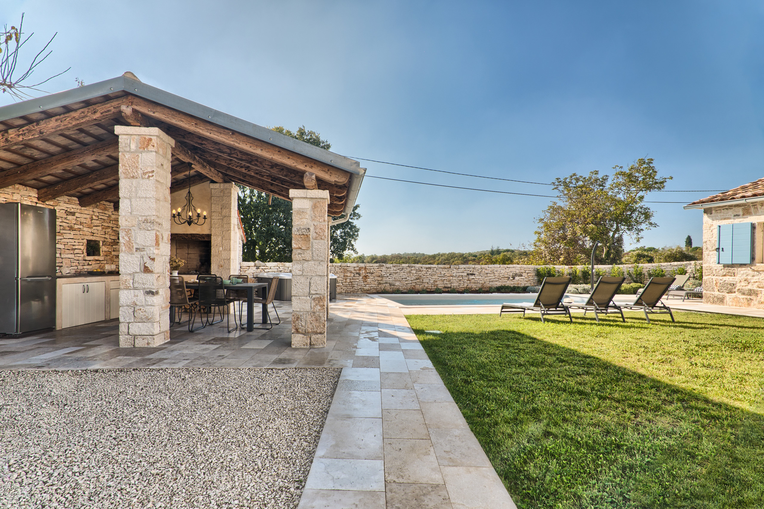 Villa Spirit of Istria is situated near the village of Kanfanar, only 13 km from the charming coastal town of Rovinj. Rovinj is famous for its picturesque old town, narrow stone streets, beautiful seaside promenades, excellent restaurants, and rich cultural and historical attractions. Many interesting sights, activities, and excursions can be reached within 10 to 15 minutes by car, making the location both quiet and very convenient.