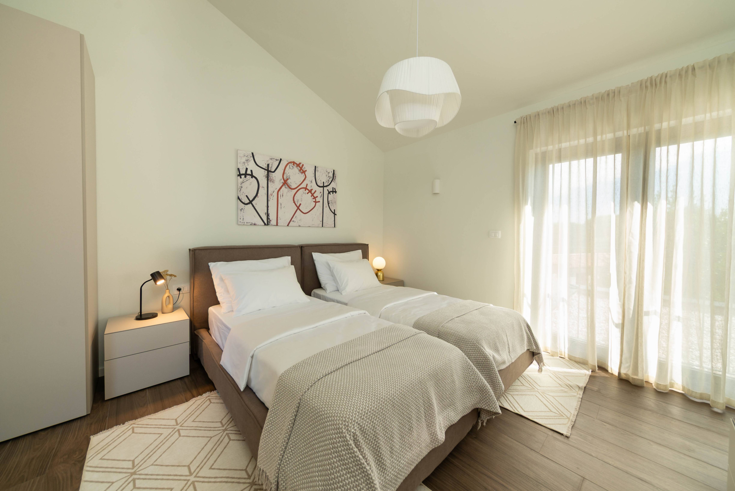 The villa offers 287 m² of living space and is set on a private 1,342 m² plot, providing comfort, space, and privacy for up to 8 guests. It features 4 spacious bedrooms, each with its own en-suite bathroom, and one bedroom also includes a stylish open-space bathtub. Three bedrooms are located on the first floor, while one bedroom is on the ground floor, which is ideal for guests who prefer easy access.