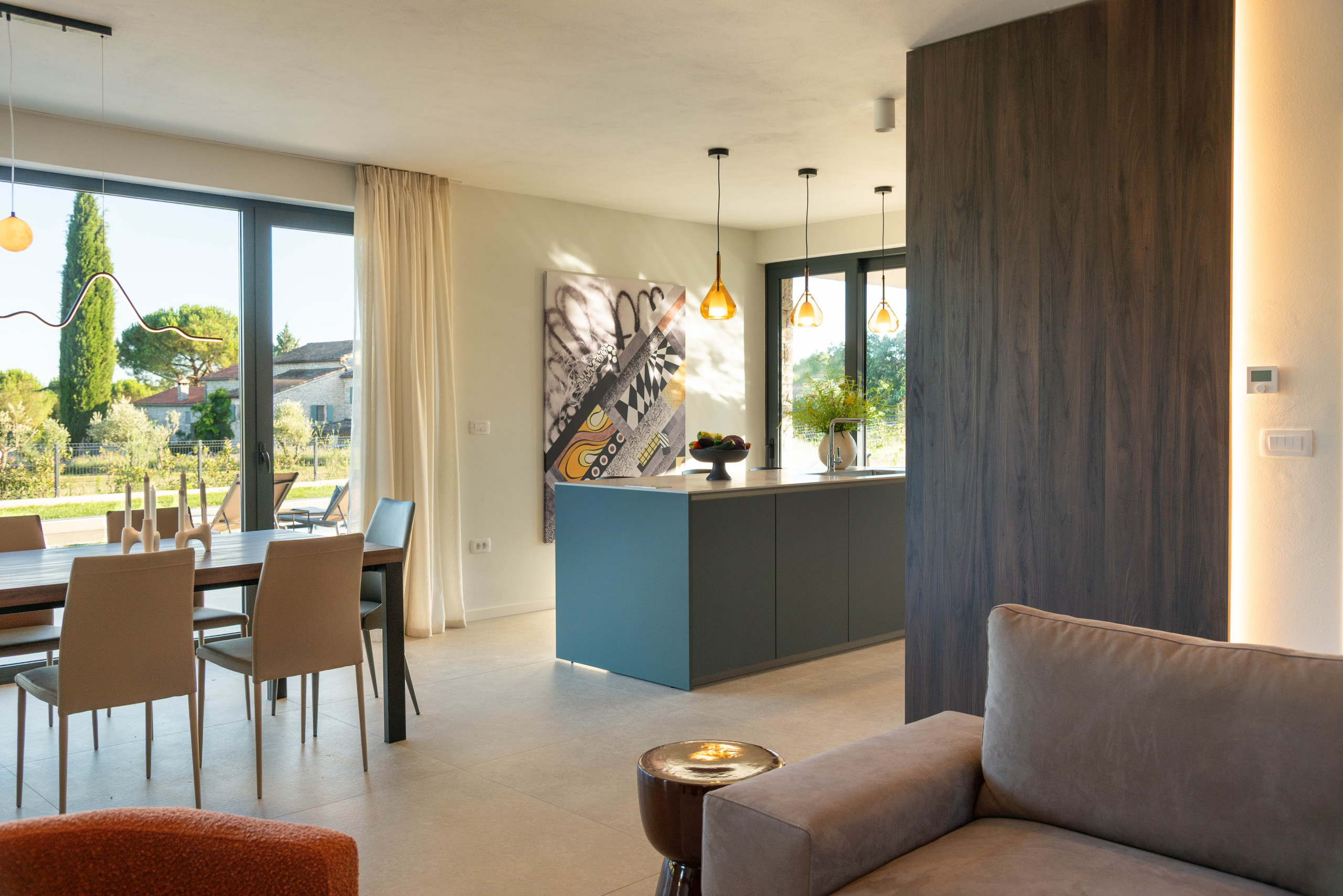 Villa Natura Silente is situated near the village of Kanfanar, only 13 km from the charming coastal town of Rovinj. Rovinj is famous for its picturesque old town, narrow stone streets, beautiful seaside promenades, excellent restaurants, and rich cultural and historical attractions. Many interesting sights, activities, and excursions can be reached within 10 to 15 minutes by car, making the location both quiet and very convenient.