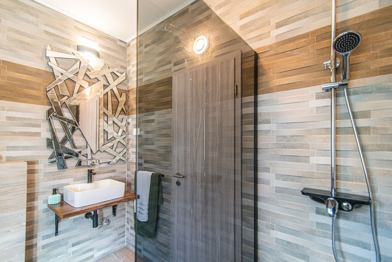 The villa features 5 comfortable bedrooms, each with a double bed—one of them can also be separated into two single beds. One bedroom is located on the ground floor, while the remaining four are on the upper level. There are 3 modern bathrooms, all equipped with showers.