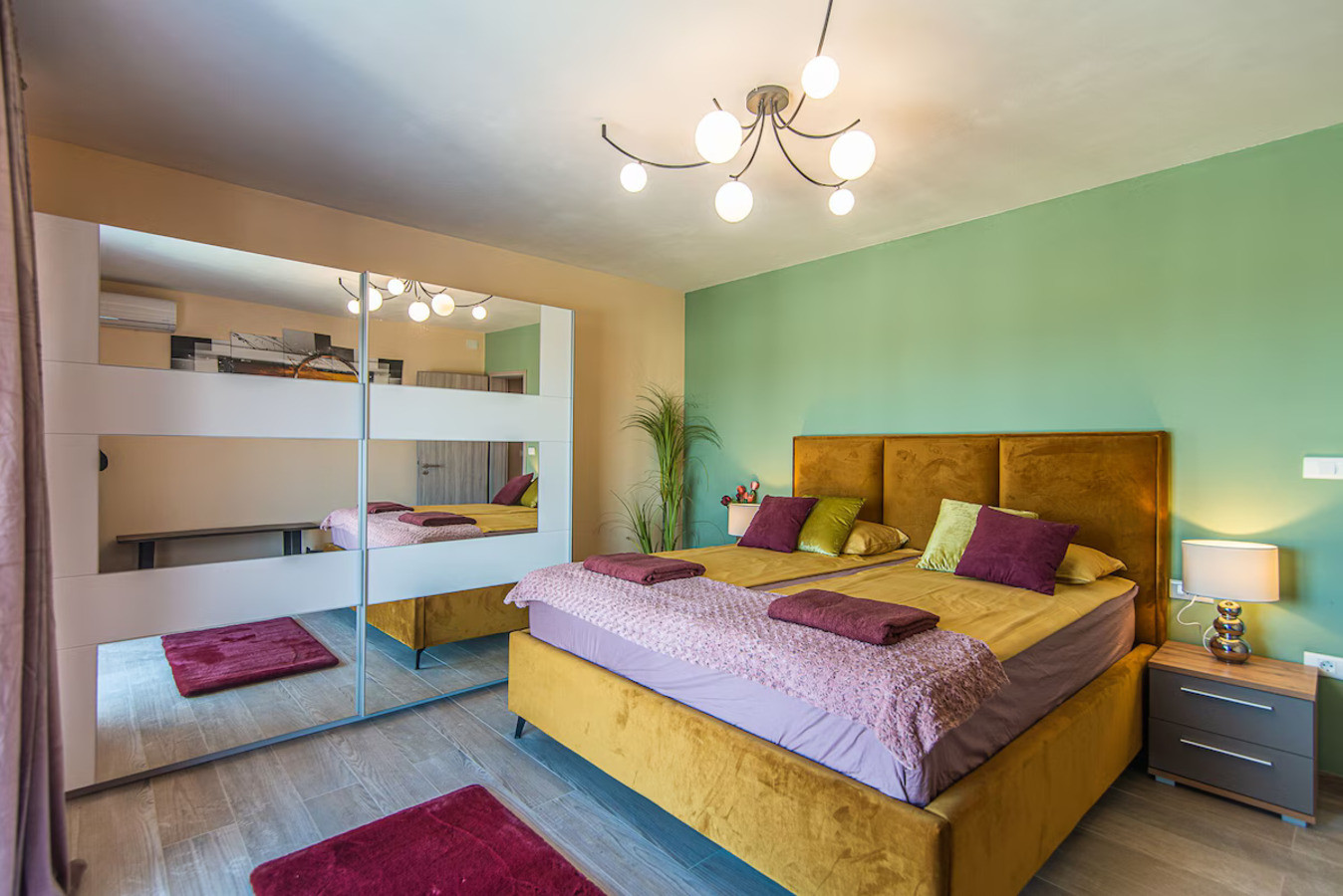 Villa Atria is a beautiful holiday home located in the peaceful town of Ližnjan, perfect for families or groups of friends. It can accommodate up to 10 people with 4 cozy bedrooms, each with a double bed, and a double sofa bed in the living room.