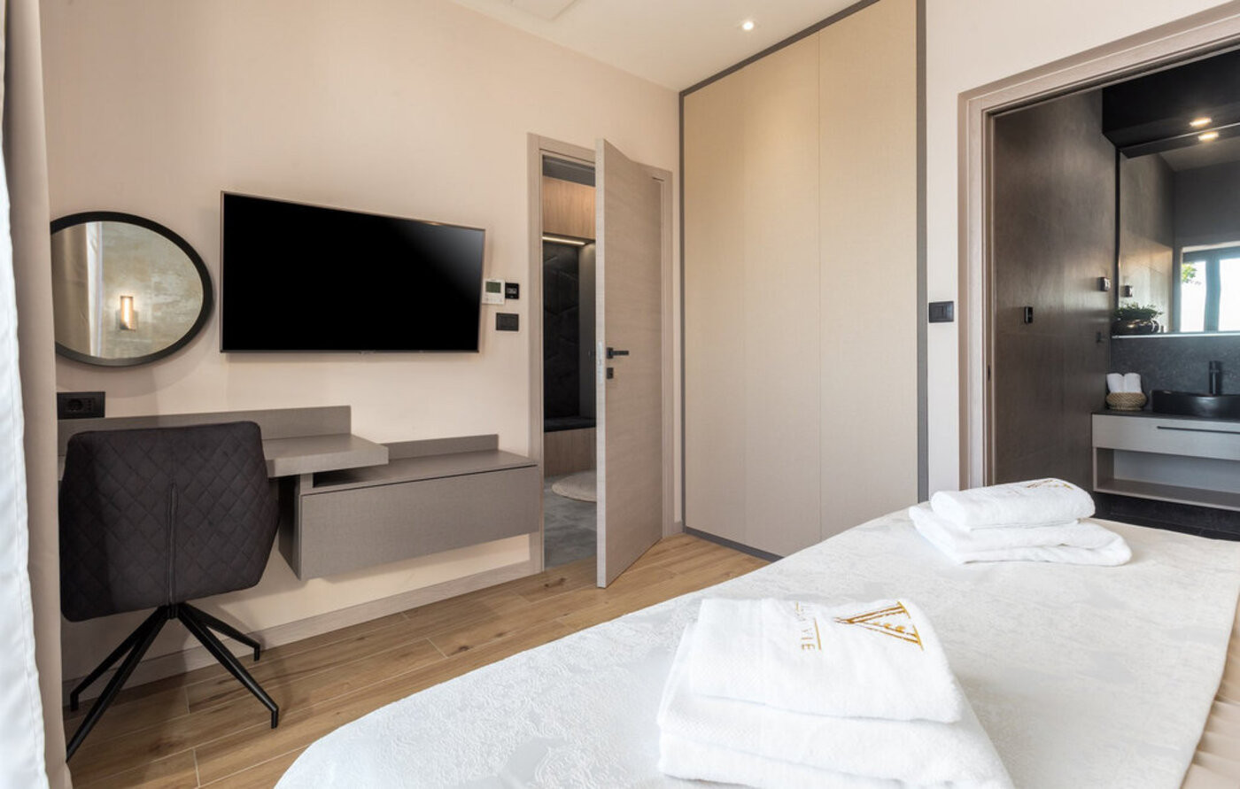 This special luxurious villa is located in Medulin and is a few steps away from the beach. You can smell the sea in the bedroom and have a fantastic view of the turquoise sea.