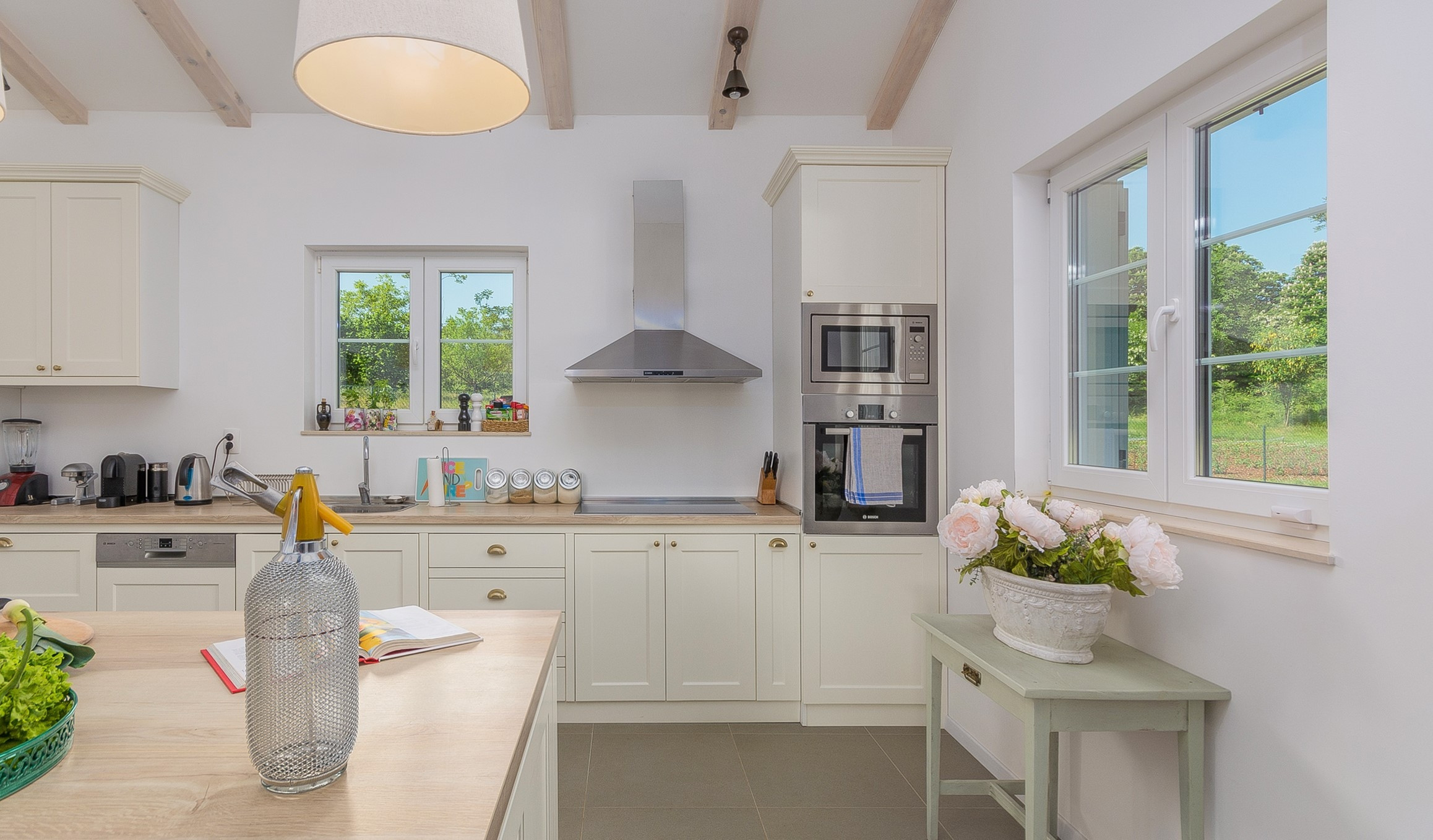 Surrounded by a beautiful, spacious garden, Villa Tre Colonne is nestled in the heart of Istria in the quiet village of Modrusani, which lies in a triangle between Kanfanar, Zminj, and St. Vincente, and not far from Rovinj. If you are looking for a peaceful area in a convenient location near the historical centre of Rovinj, this charming villa is the perfect choice for you!