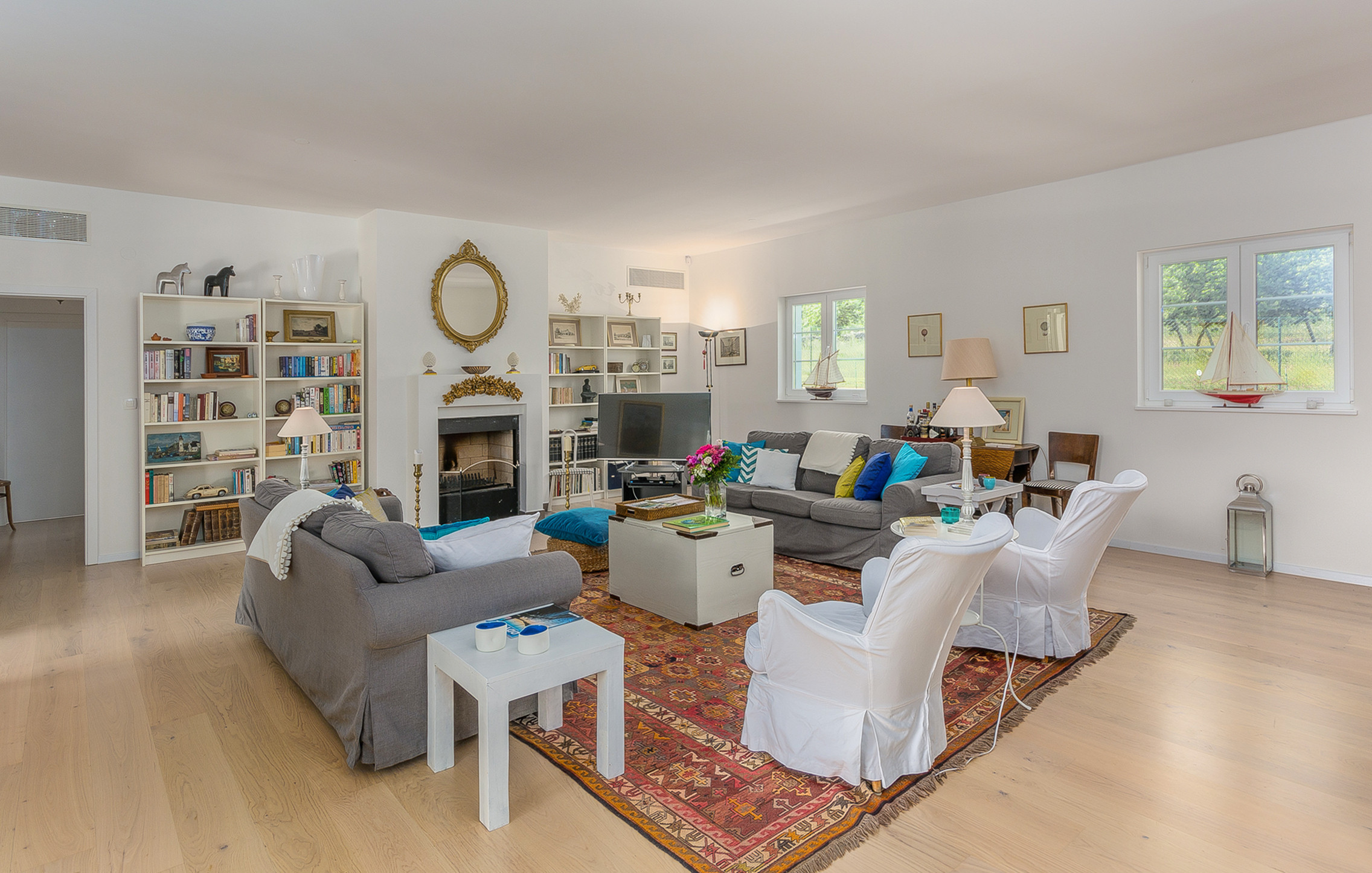 Outside, you will find a large swimming pool (12x5.5 m) and a big private parking lot. The villa has a living area of 300 m². The large, covered terrace has an outdoor dining area and a comfortable sofa group in the shadow. The garden covers over 4000 m² of land and provides plenty of space for tanning around the pool.