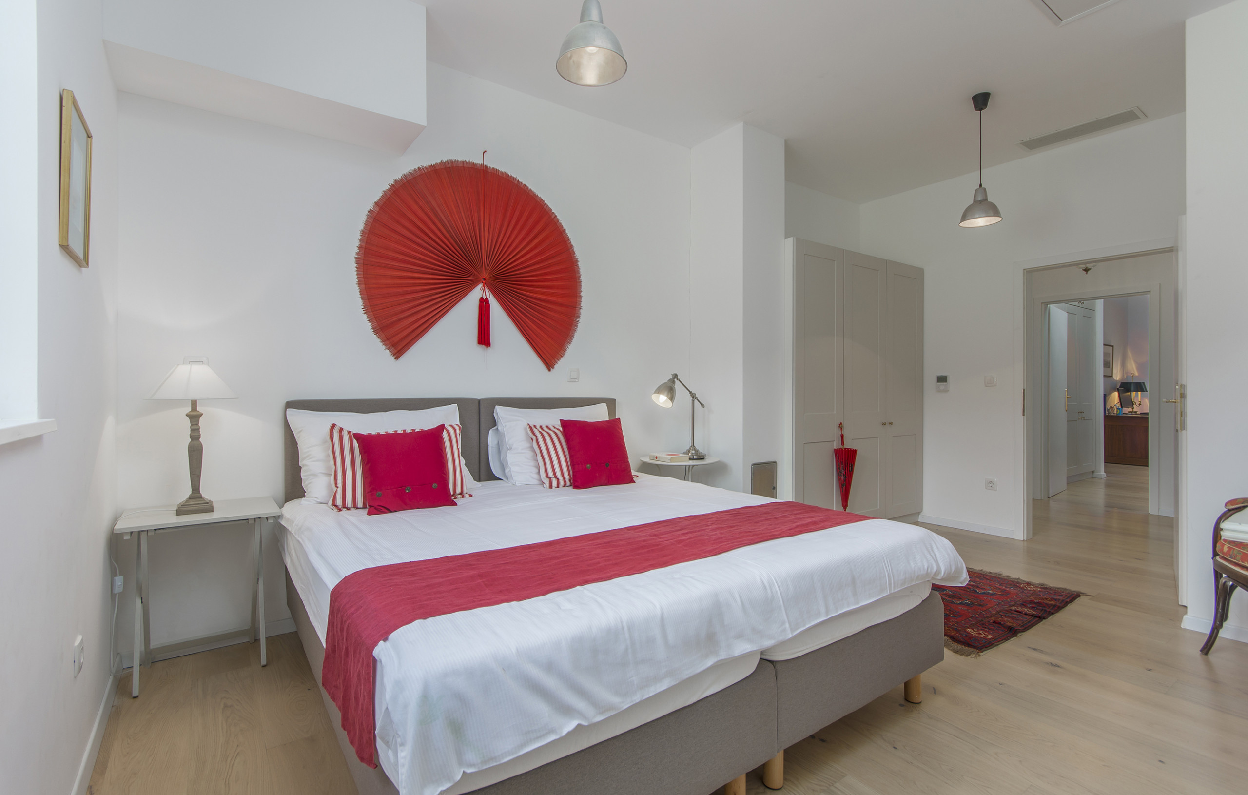 The villa consists of five comfortably furnished bedrooms, each with its own private bathroom (en suite). Each bedroom has a unique style. The villa is very welcoming, decorated with furniture, paintings, carpets, and other artifacts from different countries, reflecting the owners' lifestyle with a lot of travelling. It is fully air-conditioned, has a sauna, and a large, fully equipped kitchen.