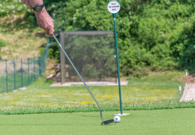 For golf enthusiasts, there is a six-hole putting green, where you can enjoy relaxing afternoons with family and friends. The property also features a golf cage. Golf clubs are available in the house.