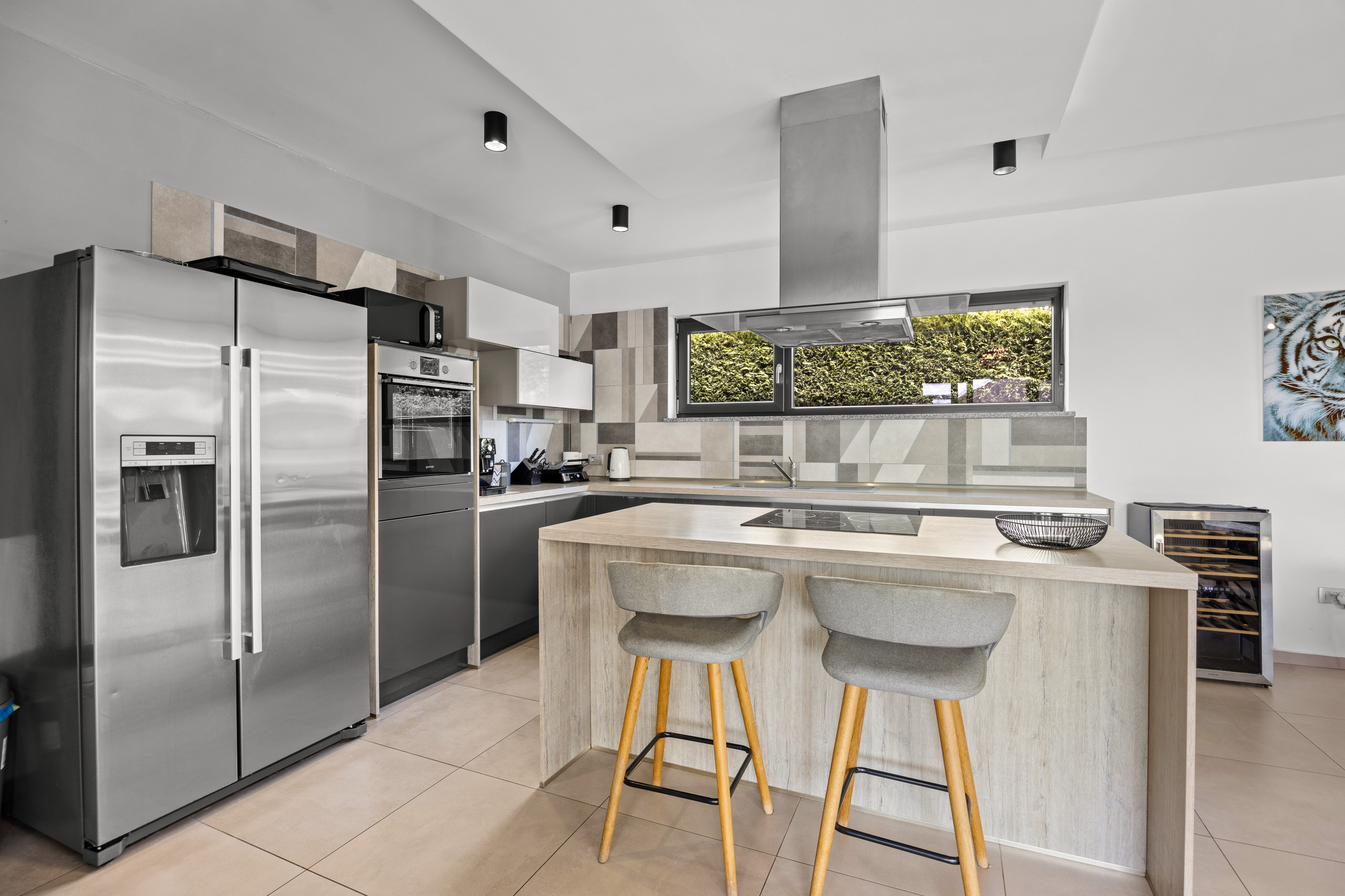 This beautiful, modern and stylishly furnished villa has a private pool and a shared tennis court with lighting so that you can play tennis even at night. But basketball fans also come here to their wishes and take an active vacation here.