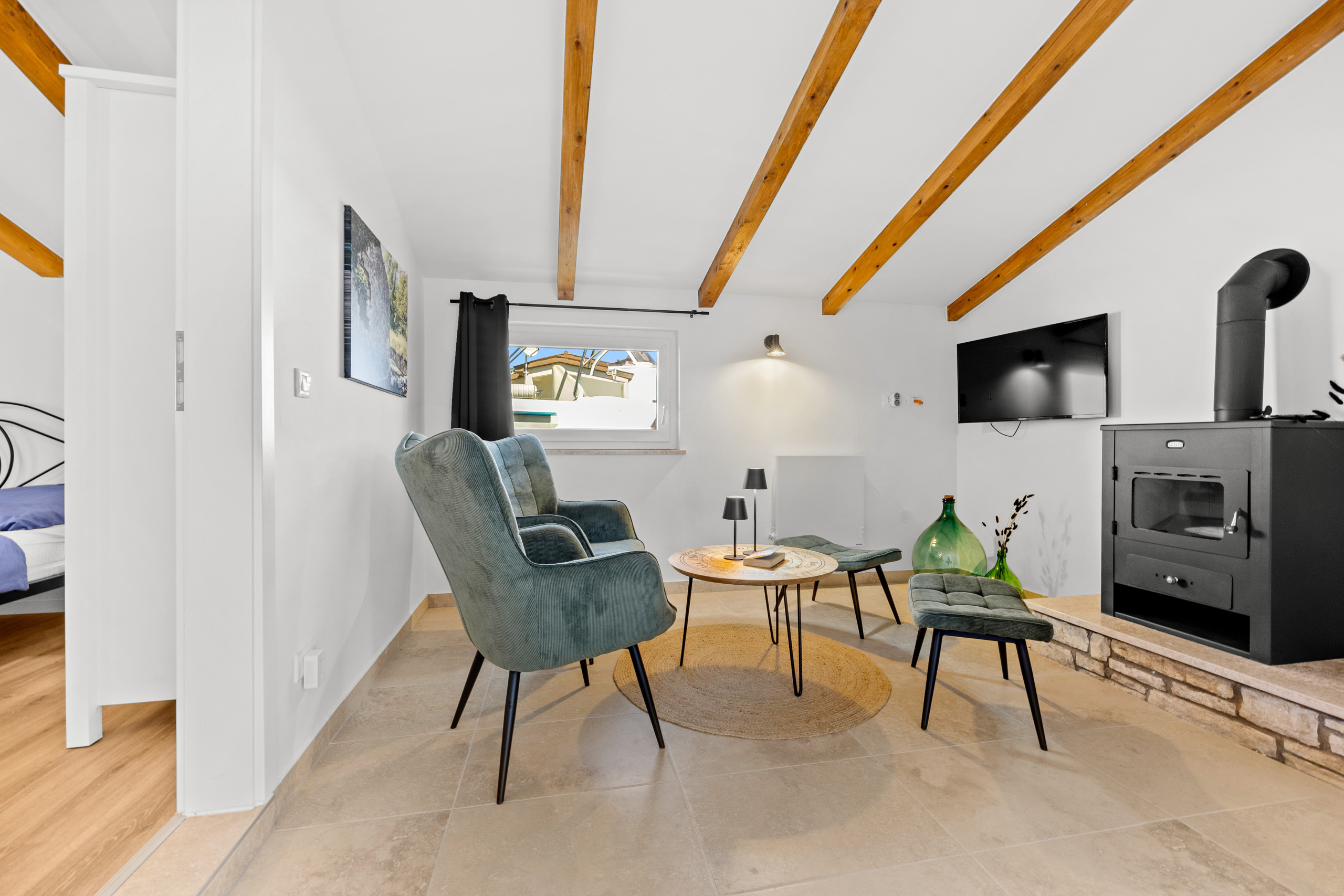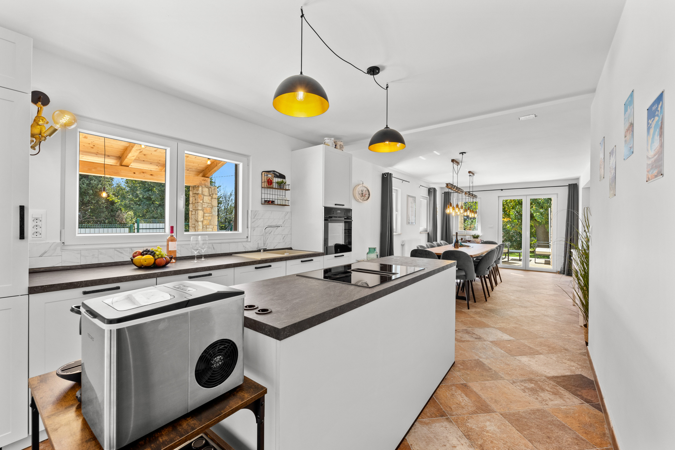 Die Villa liegt in einer ruhigen und grünen Gegend, ist aber dennoch in der Nähe von allem. Das Meer ist nur 2 km und das Stadtzentrum nur 500 m von der Villa entfernt. Geschäfte, Cafés und Restaurants erreichen Sie bequem zu Fuß. Die Gegend ist friedlich, von wunderschöner Natur und einer freundlichen Atmosphäre geprägt. Die Villa Renata ist auch ein guter Ort für Familien mit Kindern. Im Haus gibt es Brettspiele, um die Kinder bei Laune zu halten und zu unterhalten. Wenn Sie gerne die Gegend erkunden, stehen Ihnen zwei Fahrräder zur Verfügung. Sie können die Landschaft erkunden oder zum Strand hinunterfahren. Ob Sie sich am Pool entspannen, die Küste erkunden oder Zeit mit Ihren Lieben verbringen möchten – die Villa Renata ist der perfekte Ort für einen erholsamen Urlaub. Die Kombination aus Komfort, Natur und Meerblick macht Ihren Aufenthalt zu etwas Besonderem.