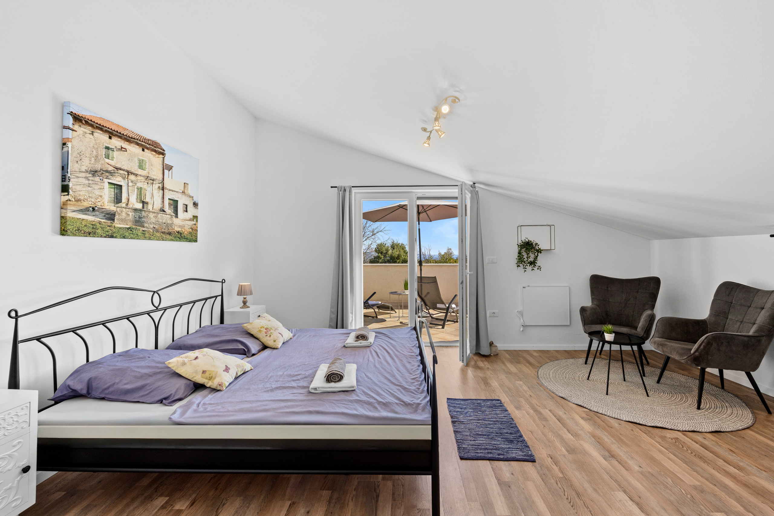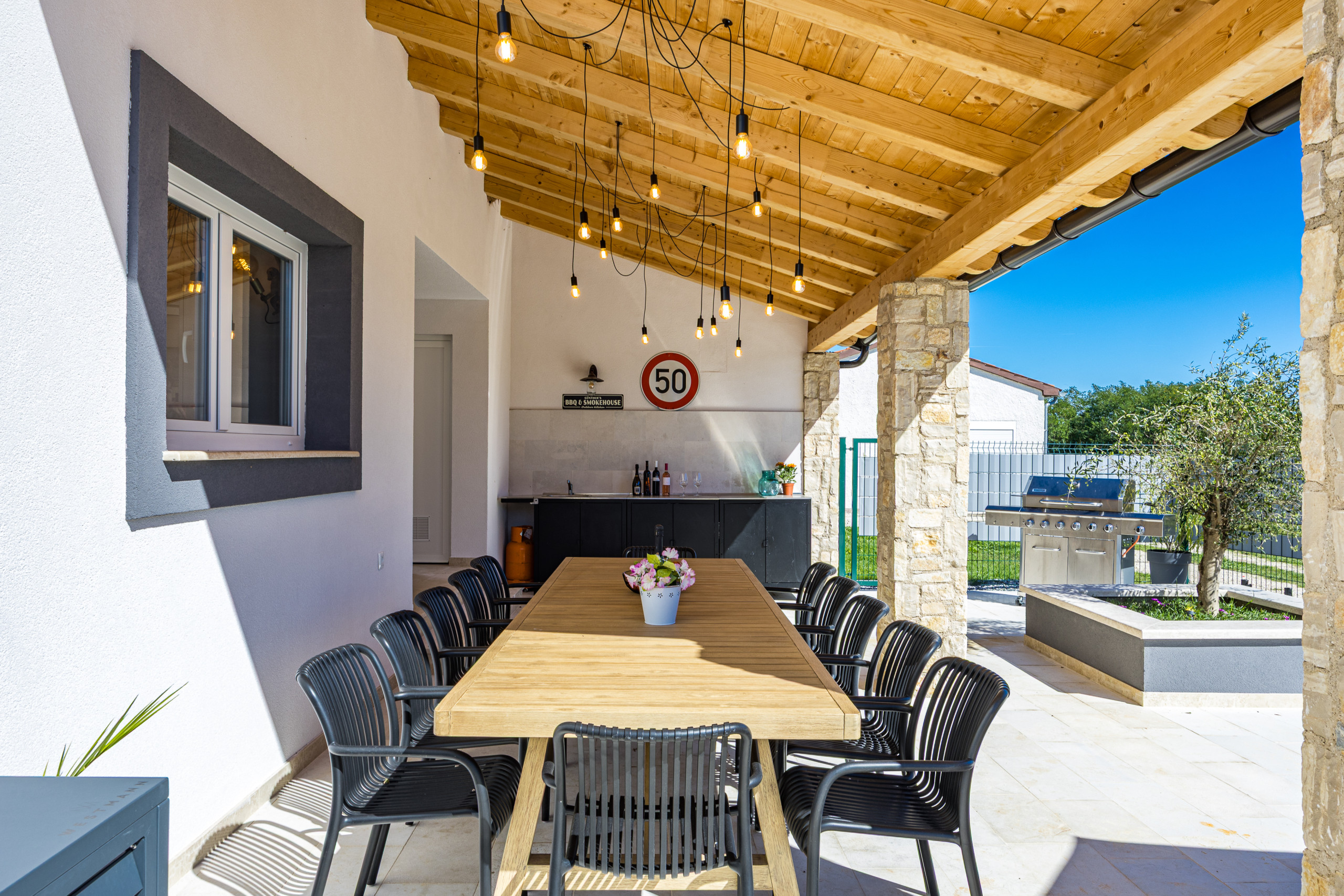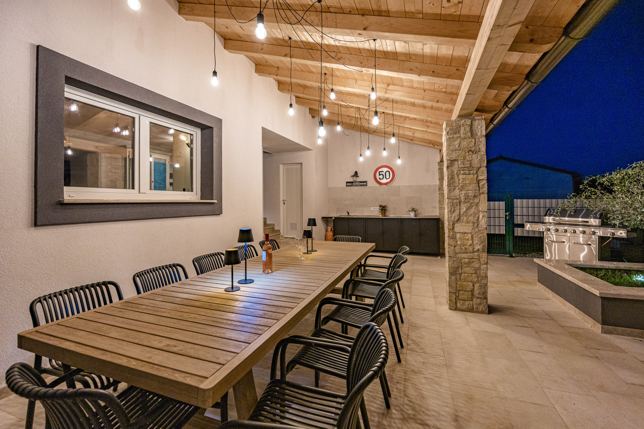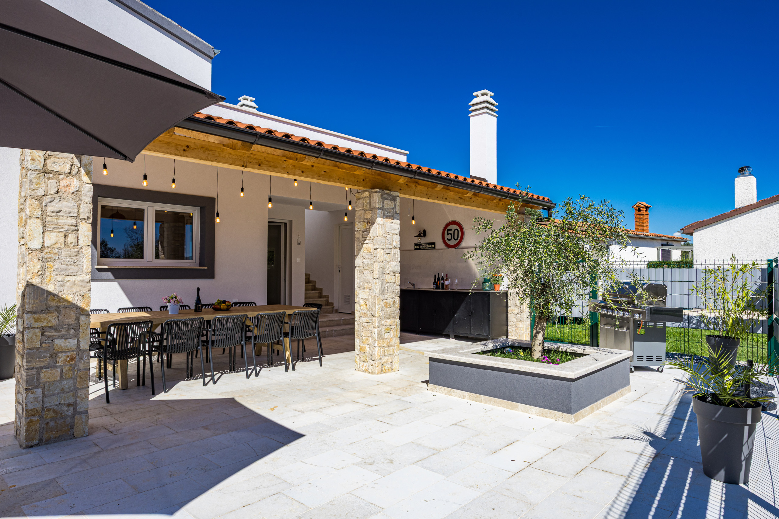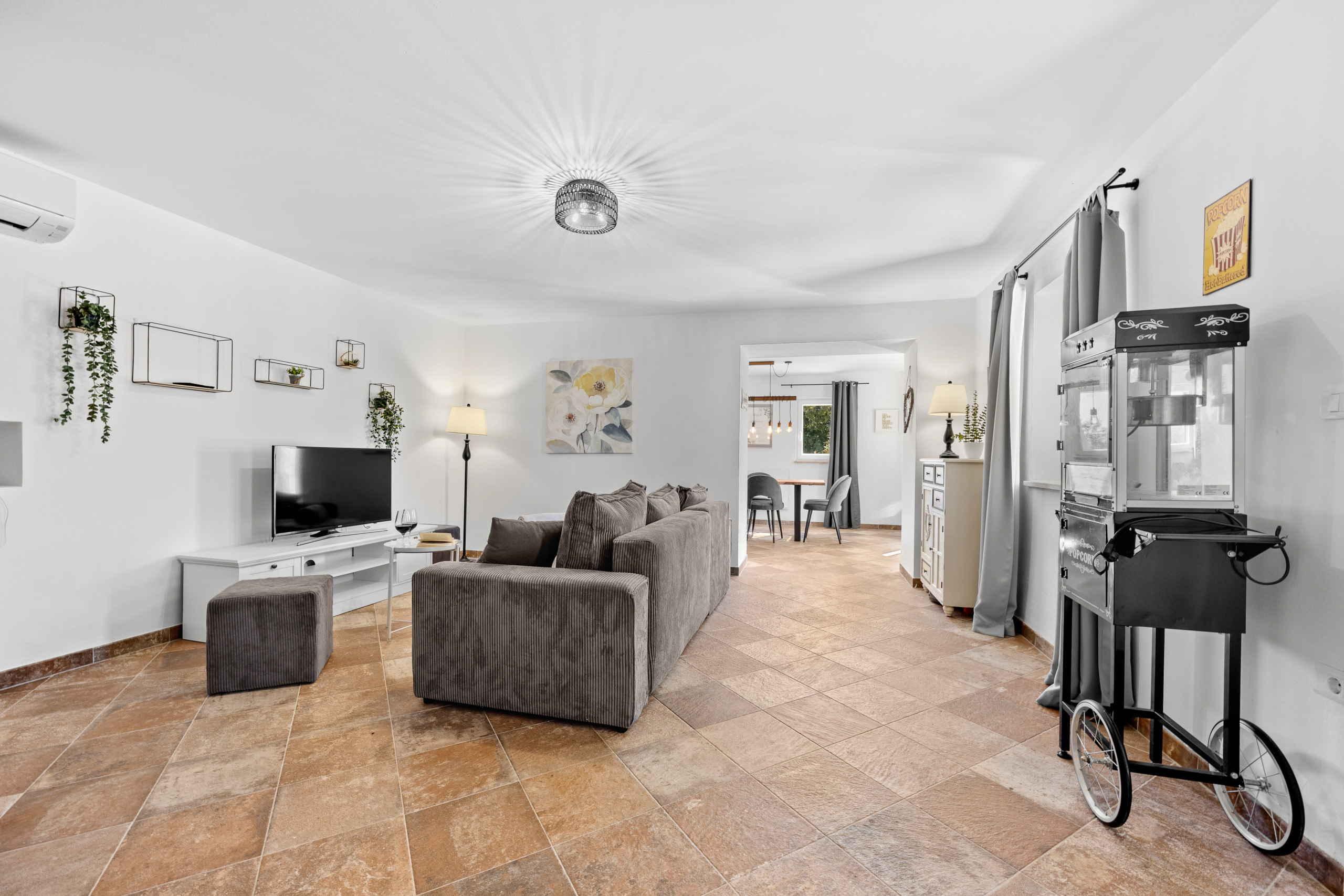 Die Villa Renata ist eine wunderschöne Ferienvilla, ideal für Familien oder eine Gruppe von Freunden. Sie bietet Platz für bis zu 11 Personen und hat alles, was Sie für einen komfortablen und ruhigen Aufenthalt benötigen. Die Villa verfügt über fünf geräumige Schlafzimmer. Alle Schlafzimmer sind mit Doppelbetten ausgestattet, und ein Schlafzimmer verfügt über ein zusätzliches Einzelbett – ideal für ein Kind oder einen weiteren Gast. Die fünf modernen Badezimmer sorgen dafür, dass jeder während des Aufenthalts genügend Platz und Privatsphäre hat. Ein Highlight der Villa Renata ist der private, beheizte Pool. Schwimmen und entspannen Sie mit herrlichem Meerblick. Der Pool kann gegen Aufpreis beheizt werden und ist somit auch bei kühlerem Wetter ideal. Rund um den Pool laden Sonnenliegen zum Entspannen und Sonnenbaden ein. Draußen gibt es einen schönen Essbereich mit Grill. Hier können Sie wunderbar im Freien speisen, einen geselligen Abend mit der Familie verbringen oder einfach bei einem Drink den Sonnenuntergang genießen.