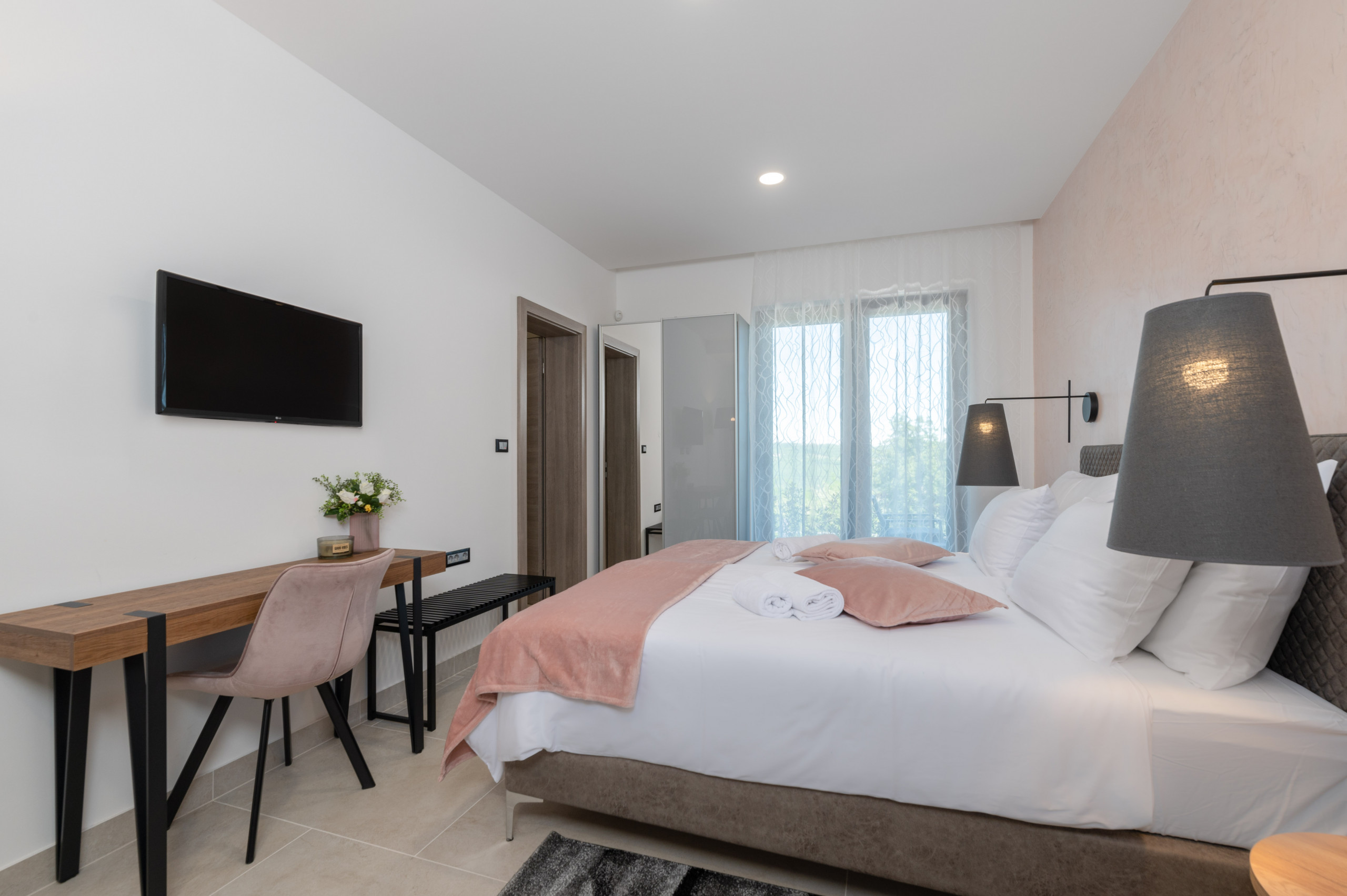 Villa St. Nikola is perfect for families or groups, with space for up to 10 people (8 adults + 2 kids). The villa has 4 cozy bedrooms with double beds and a sofa bed in the living room. There are also 4 modern bathrooms for your comfort.