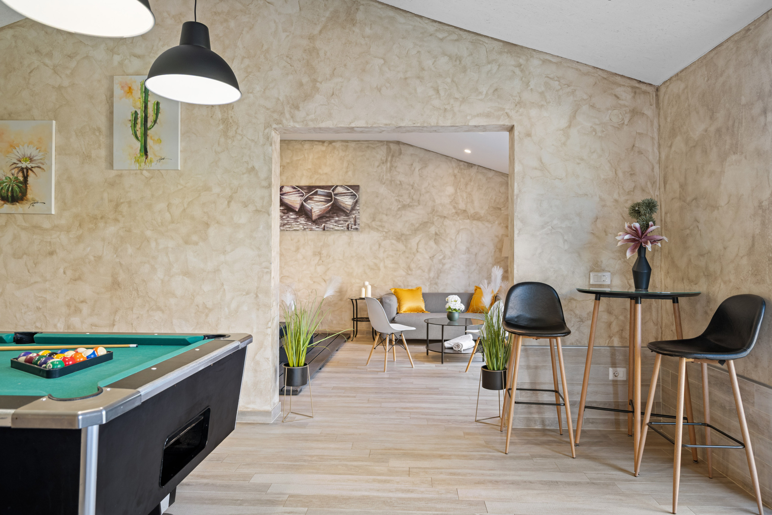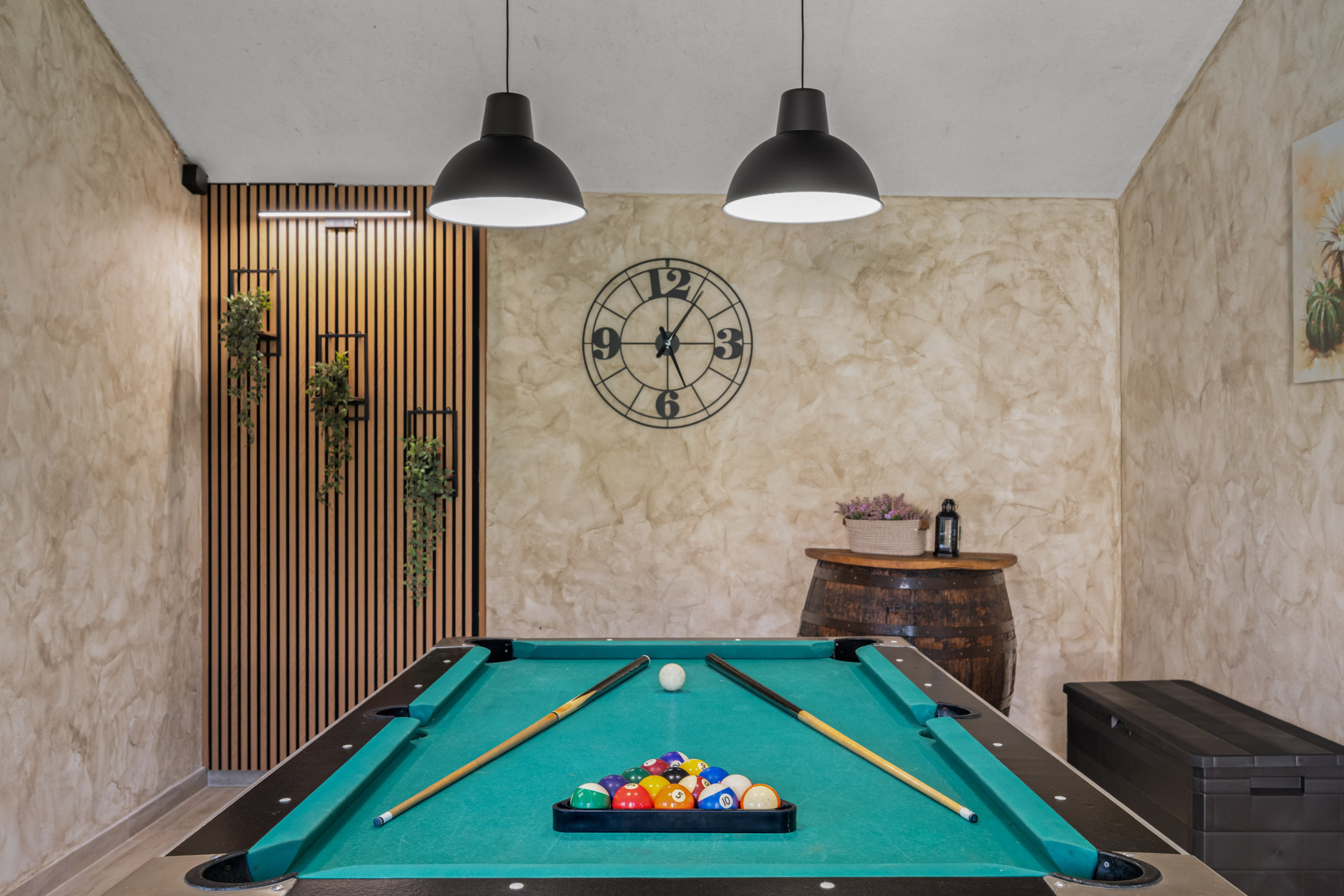 Inside, the villa features an indulgent indoor jacuzzi, and with underfloor heating, it’s perfect for year-round stays. For indoor entertainment, there’s a billiards table, a PlayStation 4, and a variety of board games to keep everyone entertained. For outdoor fun, the villa also offers goals for mini football, a children’s playground, table tennis and a badminton net, ideal for some active relaxation in the fresh air.