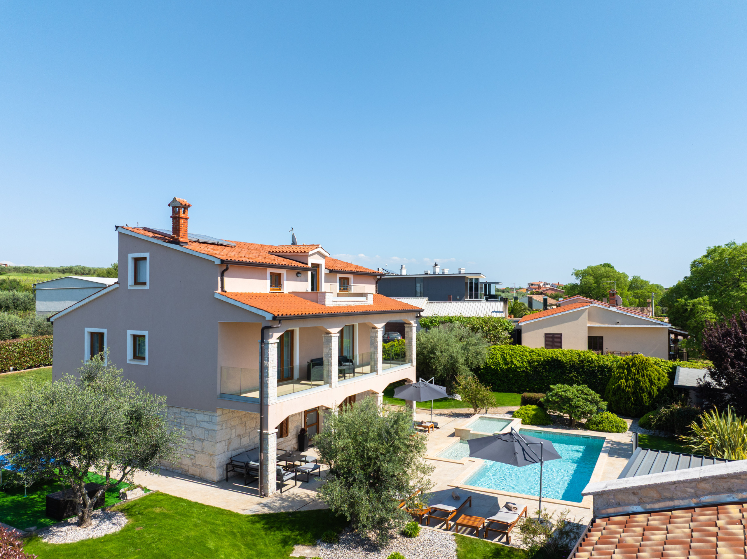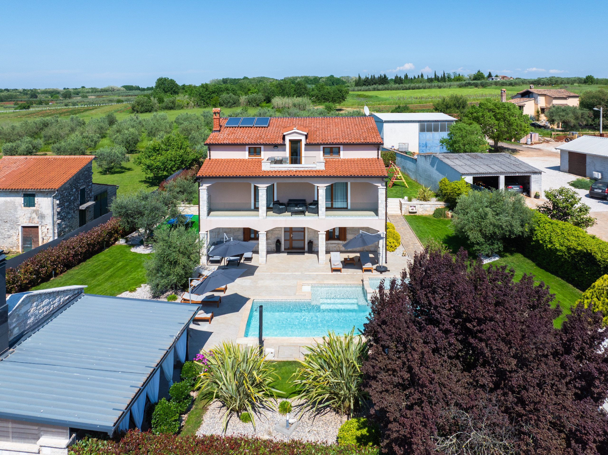 Villa Gambin near Poreč for 8 persons with private 36 m2 pool, whirlpool, kids playground & sea view