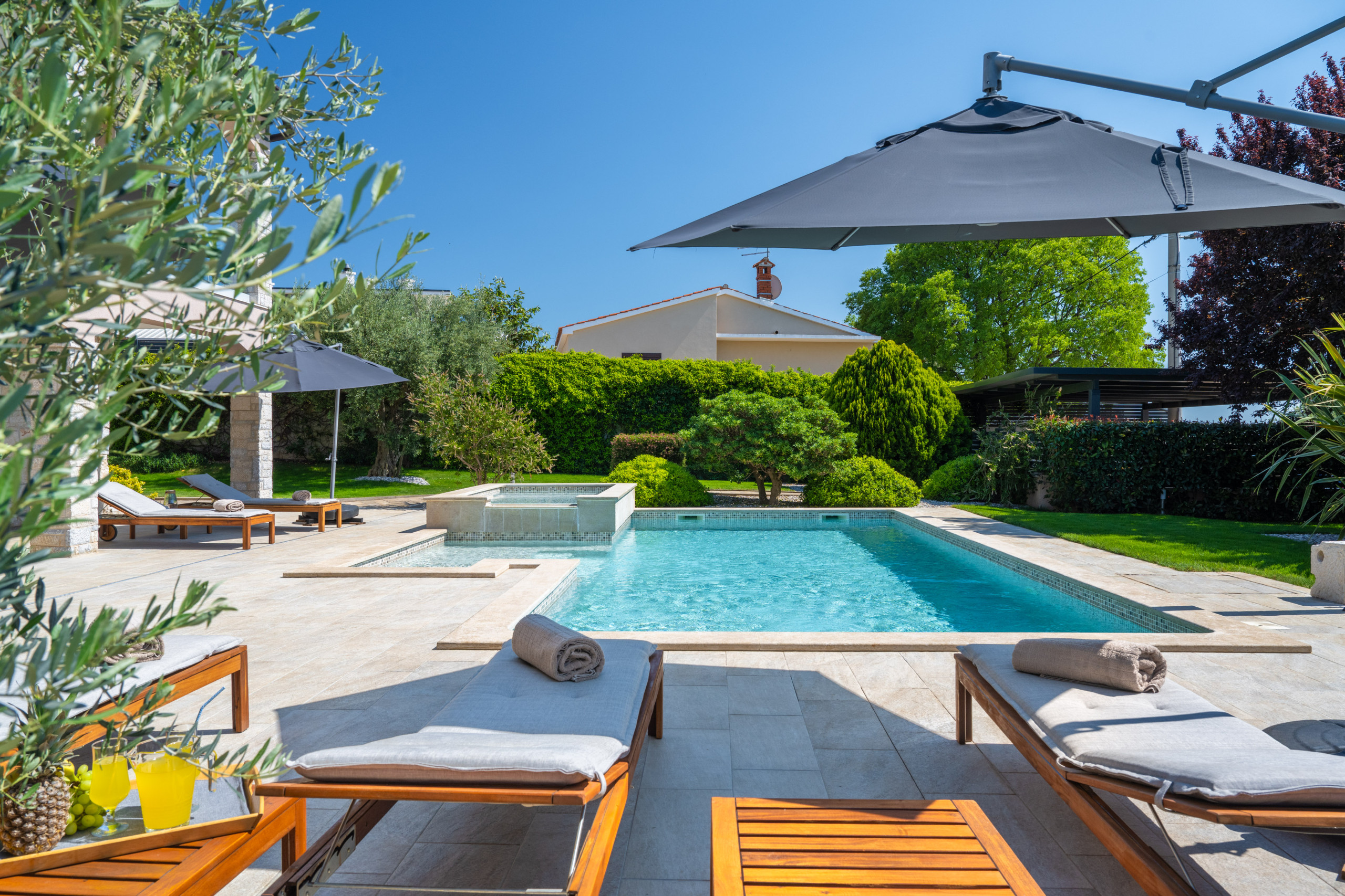 › Istrien › Kaštelir (Castelliere) › Villa Gambin near Poreč for 8 persons with private 36 m2 pool, whirlpool, kids playground & sea view