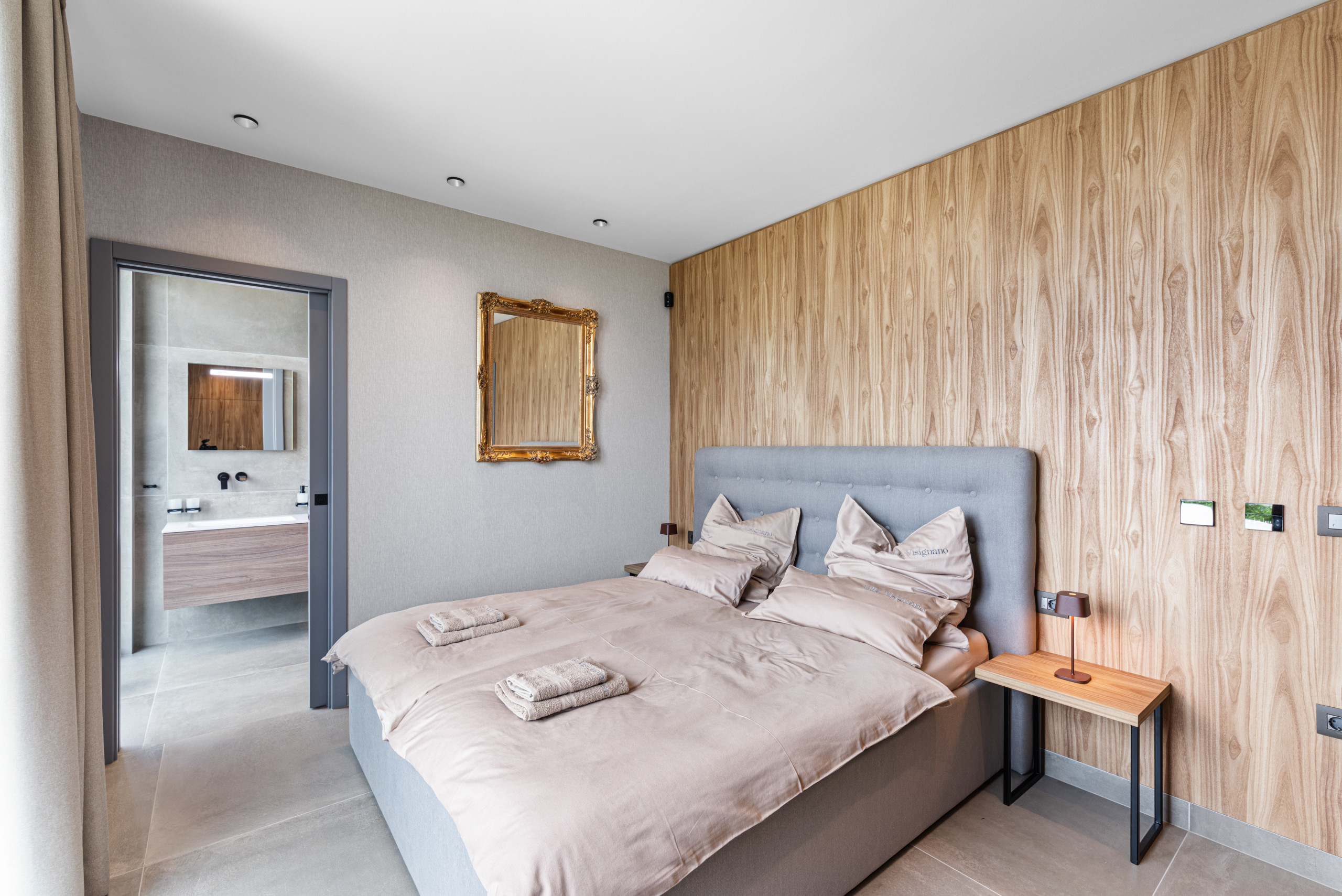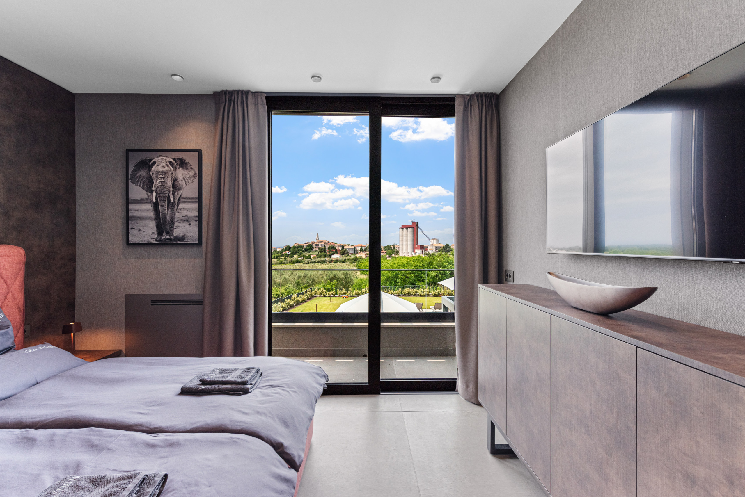 The exclusive Villa Visignano in Visnjan, just a short drive from the charming coastal town of Poreč, offers luxurious comfort across 230 m² of living space on a generous 1,144 m² property. The villa is perfect for 8 guests and features 4 elegantly furnished bedrooms, each with its own en-suite bathroom with a shower. A special highlight is the upstairs bedroom, which boasts a private balcony with a jacuzzi and stunning sea views—an ideal spot for ultimate relaxation.