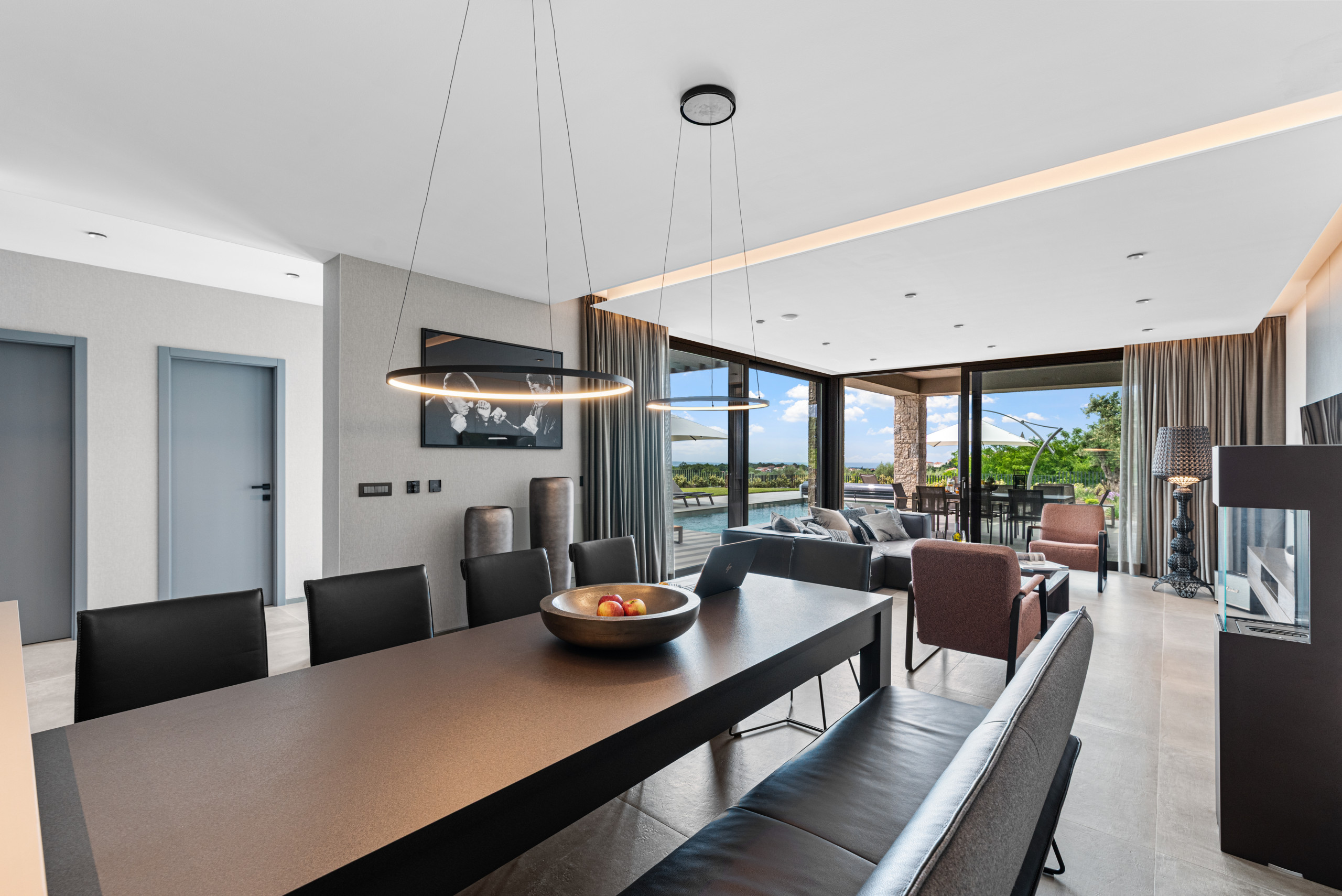 The villa also offers a wellness area with a sauna, additional WC and shower. The 49 m² heated saltwater pool invites you to swim from spring to autumn and is surrounded by a sunny terrace equipped with 8 sun loungers and 2 umbrellas. For outdoor dining, you can enjoy a fully equipped summer kitchen with a gas grill, perfect for cozy evenings under the Istrian sky.