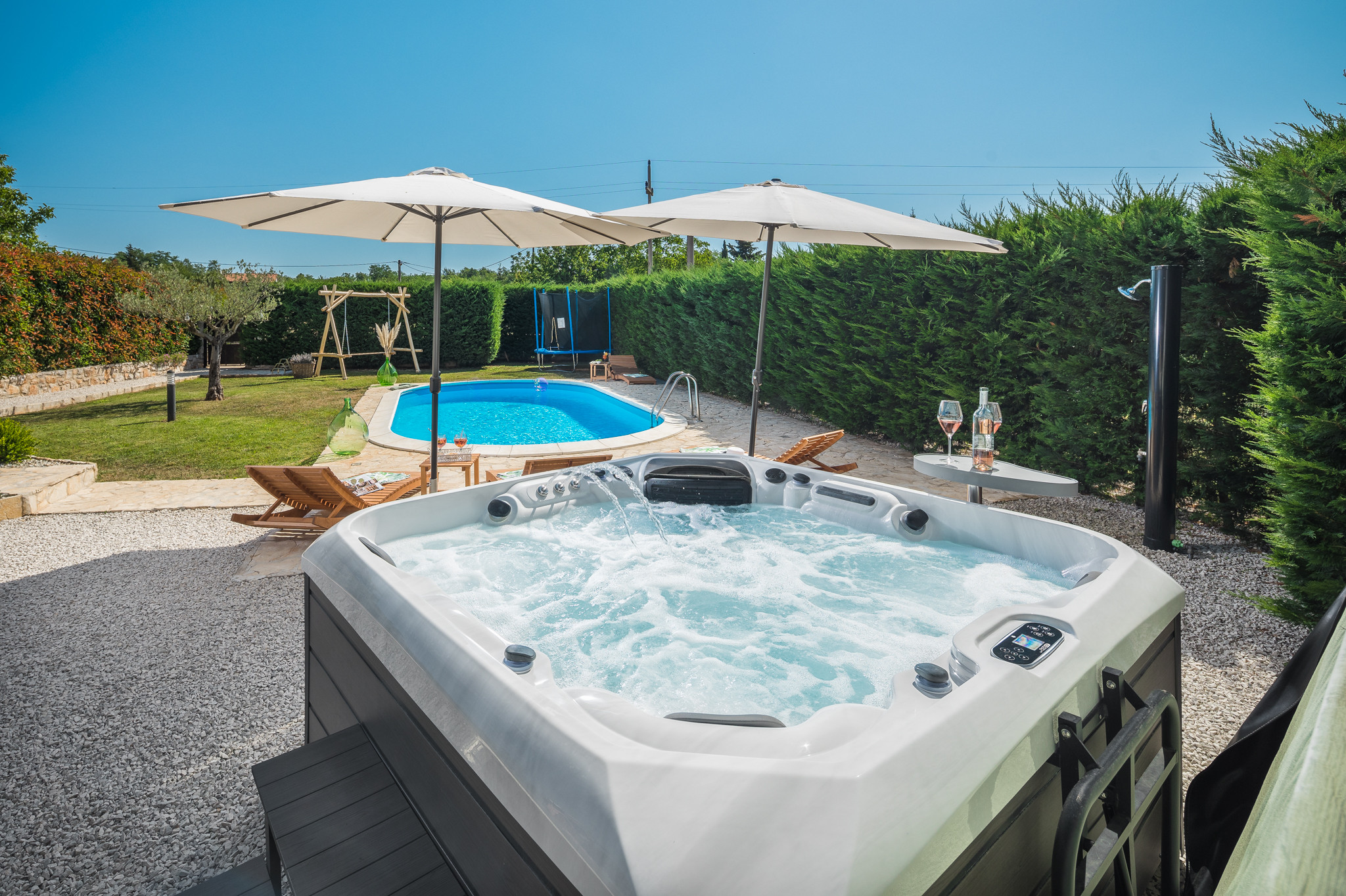 › Istria › Višnjan (Visignano) › Villa Nonni in Central Istria for 4 persons with 32 m2 private pool, jacuzzi, free bikes & kids playground