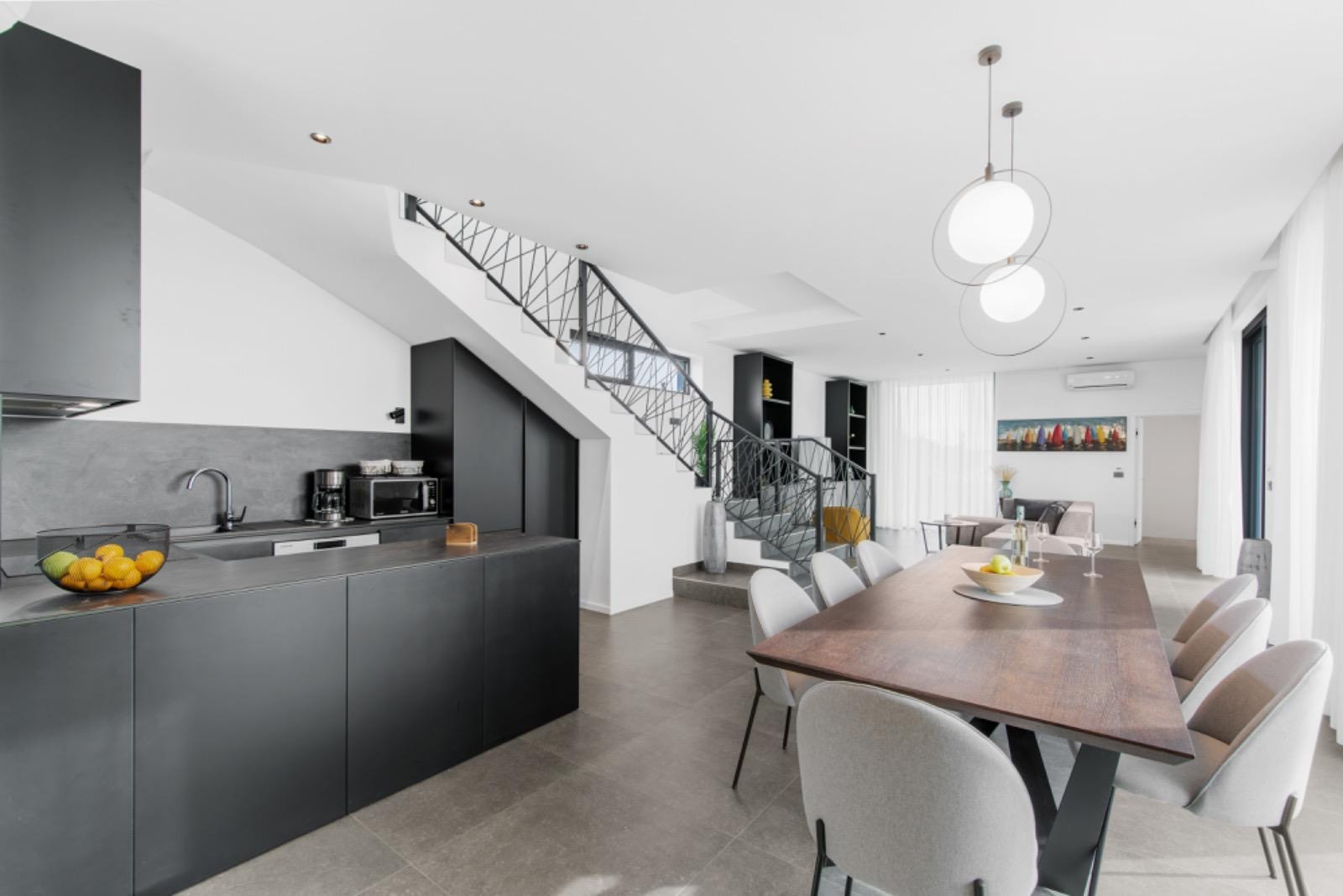Designed to accommodate 8 guests, the villa features 4 elegantly furnished bedrooms with double beds. One bedroom is located on the ground floor, while the remaining three are on the first floor. There are 4 modern bathrooms, all equipped with showers, and one of them also features a bathtub. In addition, the villa offers a separate guest WC for extra convenience. For stays outside the summer season, the villa is equipped with underfloor heating to ensure maximum comfort.