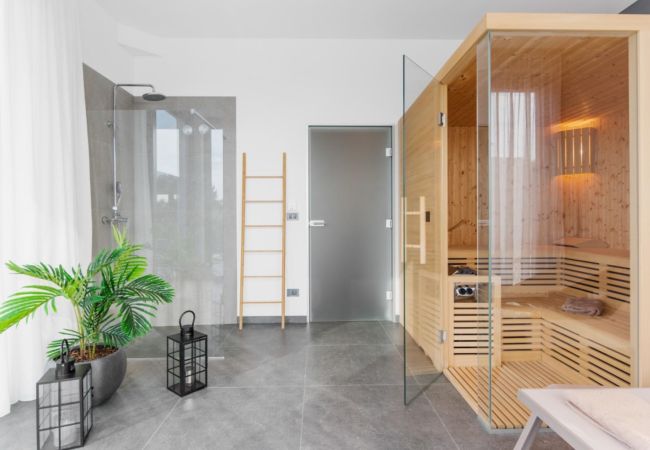 Villa Nura also offers wellness amenities, including a sauna with shower and a fitness corner. The fully equipped covered outdoor kitchen with gas grill ensures unforgettable evenings spent outdoors.