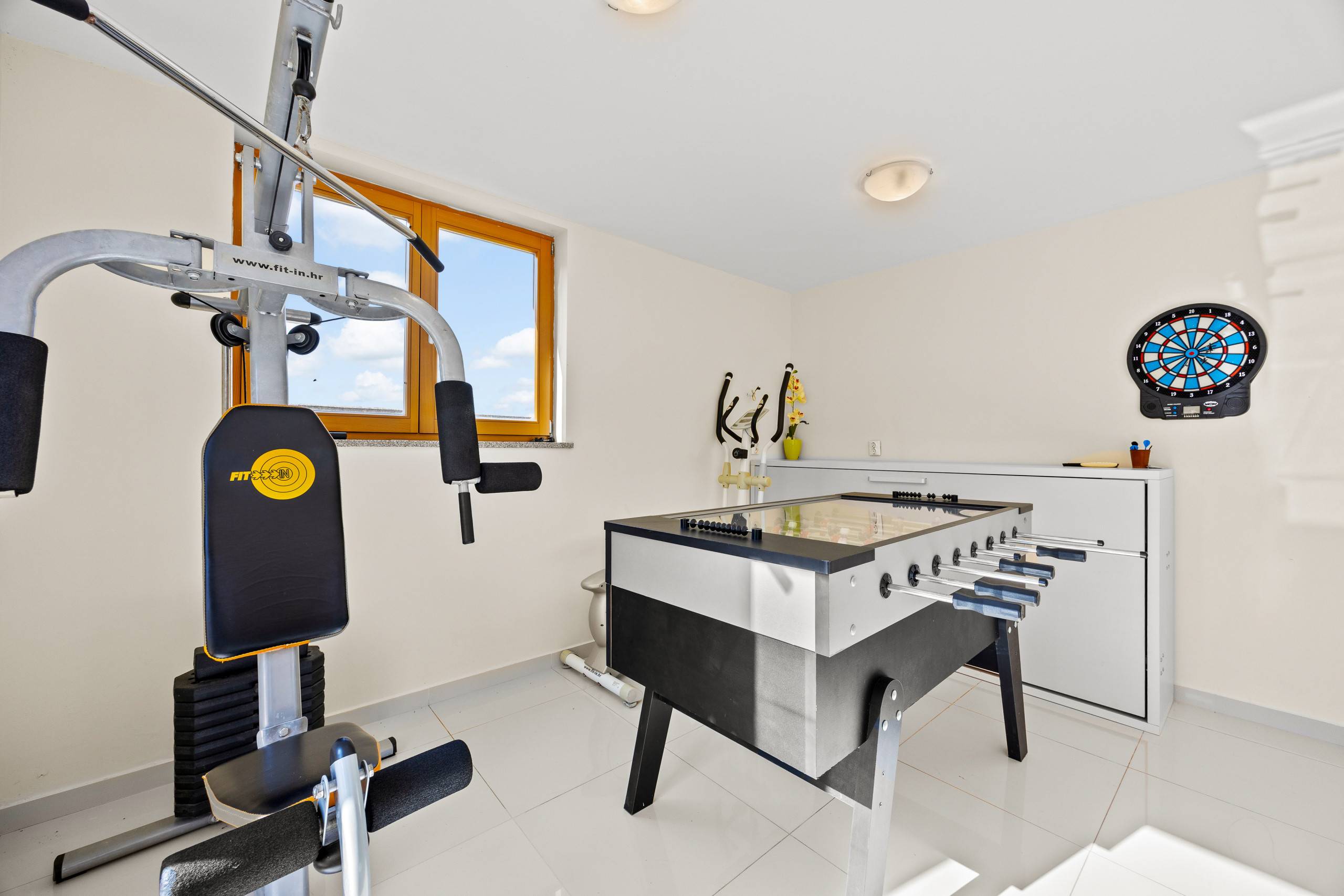 Villa Palatium is also ideal for families with children and active guests. There is a children’s playground, board games, darts, table tennis, fitness area, and even a pool table — so there is always something fun to do for everyone, no matter the age.