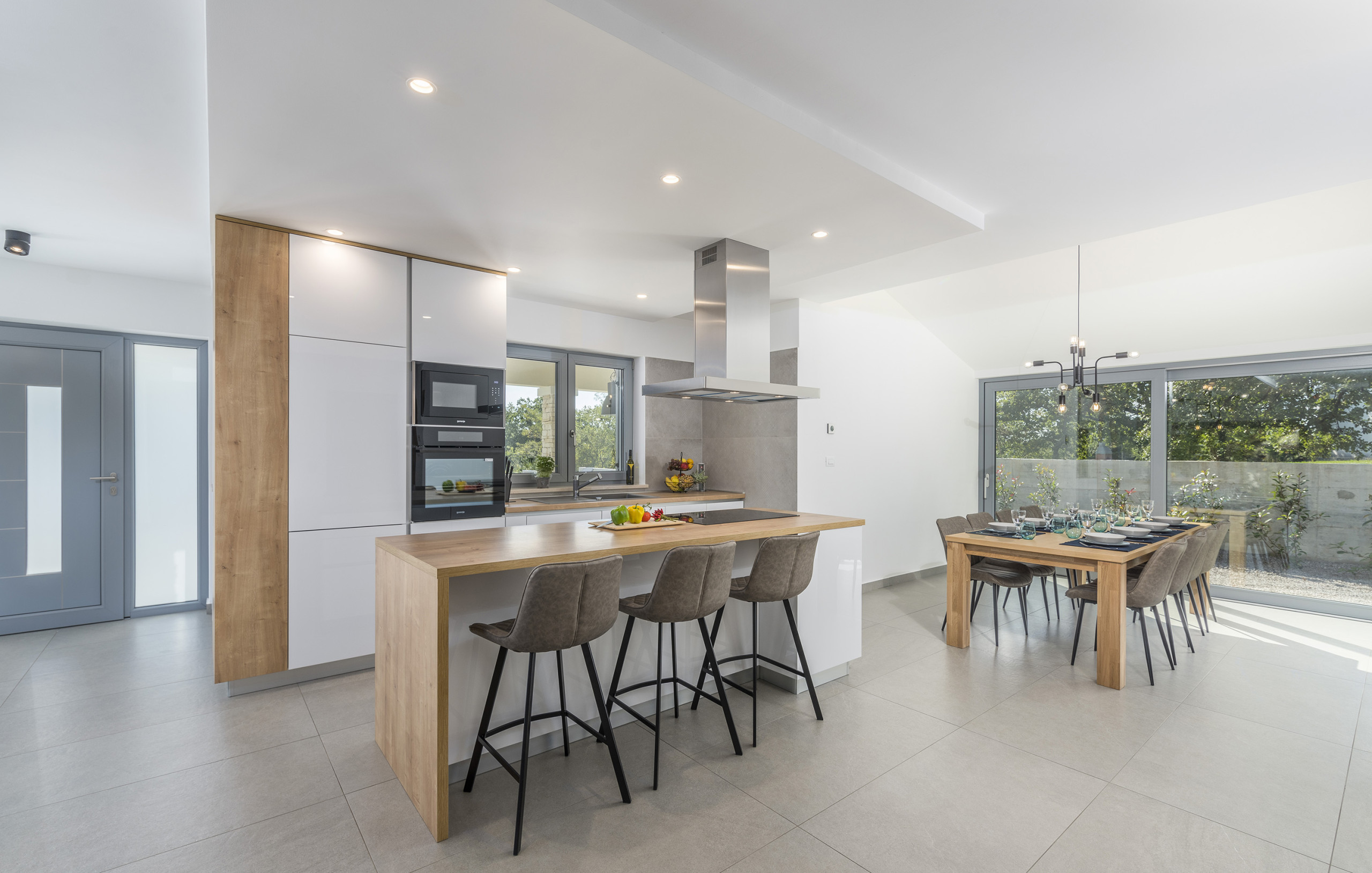 For entertainment and fun, the villa offers board games, a PlayStation 4, table tennis, a billiard table, table football and a children’s playground. The house is equipped with underfloor heating and provides covered parking for up to four cars.