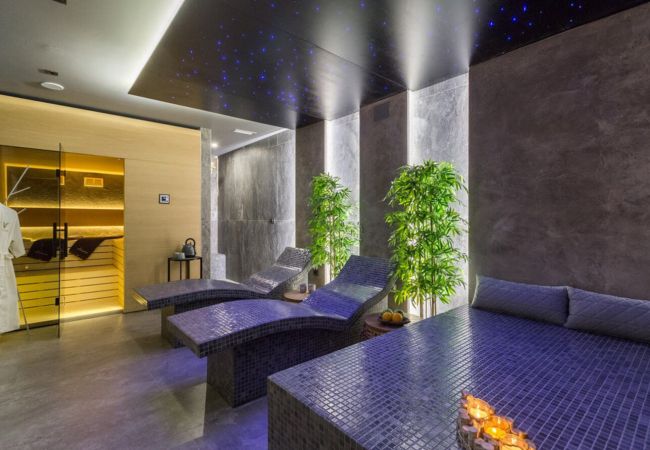 Natural light creates a lightness and carefreeness that makes you forget the stresses of everyday life. Who wouldn't want to be woken up by the first gentle rays of sunshine and enjoy a wonderful panoramic view of the vastness of the sea from a dreamy double bed? The villa has a total of 5 bedrooms with en-suite bathrooms. The master bedroom even has a bathtub with a fabulous sea view. The open, bright concept continues in the light-flooded living and dining area, where you can spend your luxury vacation in the best company. From there you can access the terrace, where a breathtaking panoramic view opens up. Swim in the private pool and make yourself comfortable in the lounge area with a glass of champagne and look over the palm tops into the sea, just 100 meters from the villa. To the side of the villa there is a barbecue and spacious dining area on the terrace. The basement of the villa offers further highlights that provide variety. There is a rustic tavern with a grill and dining area and an in-house cinema with a popcorn machine. Relax in the sauna and indoor whirlpool and then enjoy the peace and quiet on the numerous loungers. From the basement you can access the garden, where you can admire the sky on clear summer nights.