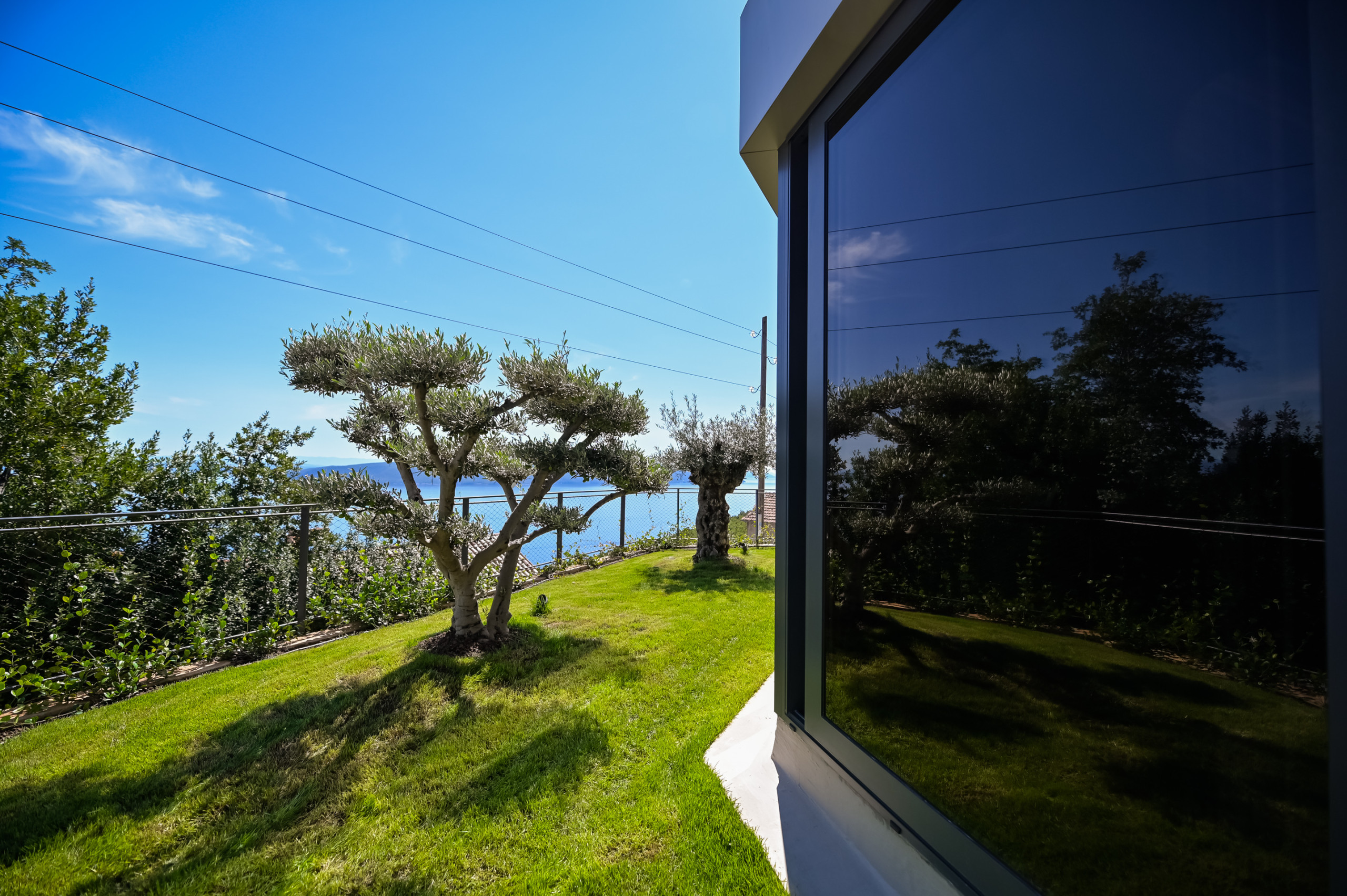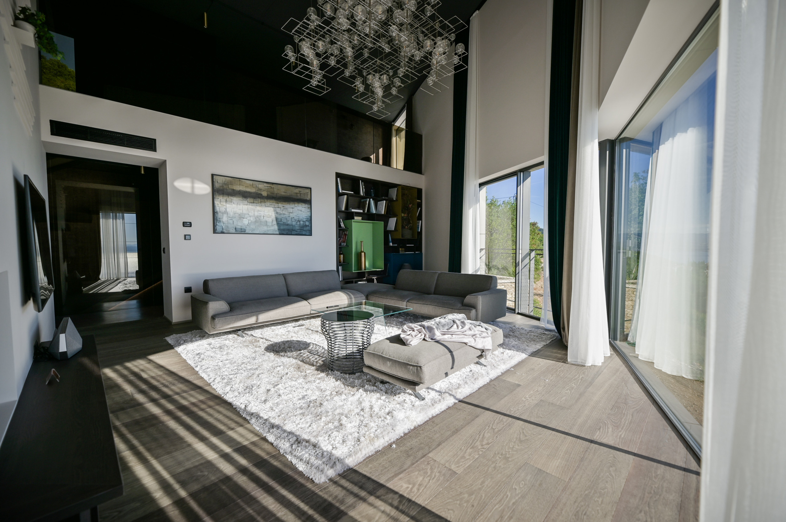 Guests can indulge in the private wellness area, featuring a jacuzzi, sauna, two loungers, a shower, and a WC. A fully equipped fitness room is also available. The villa offers panoramic sea views from every room, creating a serene and relaxing atmosphere throughout your stay. Underfloor heating provides additional warmth, making the villa perfect for stays outside the main season.