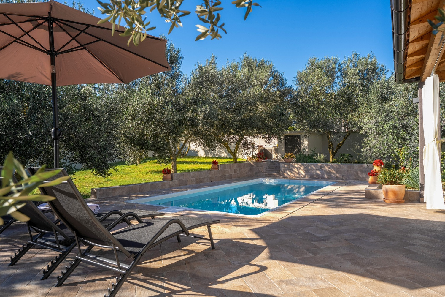 Step outside and enjoy the 22 m² private pool, surrounded by 6 sunbeds and 2 sun umbrellas, ideal for soaking up the Istrian sun. After a swim, refresh in the outdoor shower, then gather in the outdoor dining area—complete with a gas BBQ—for meals under the open sky.