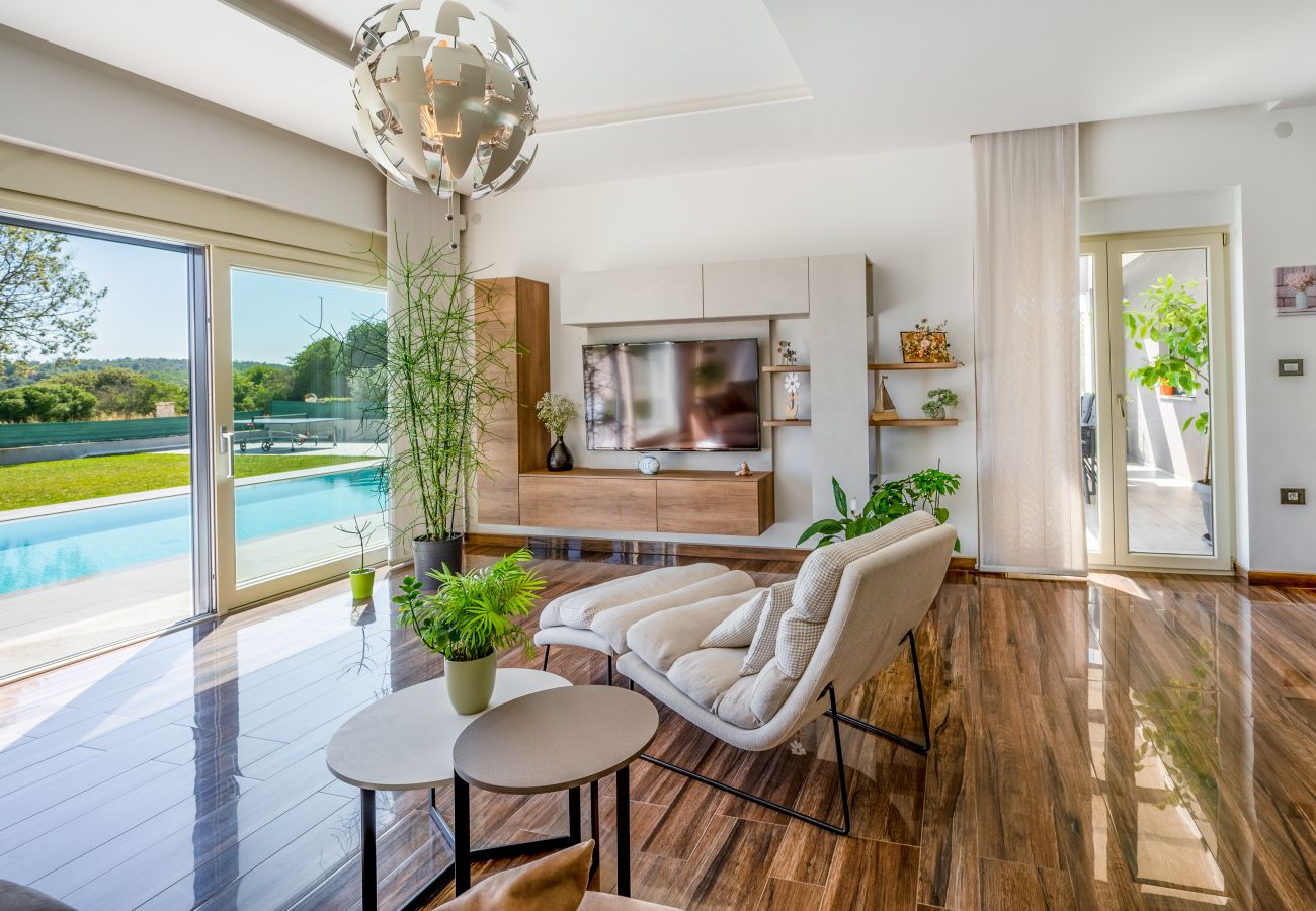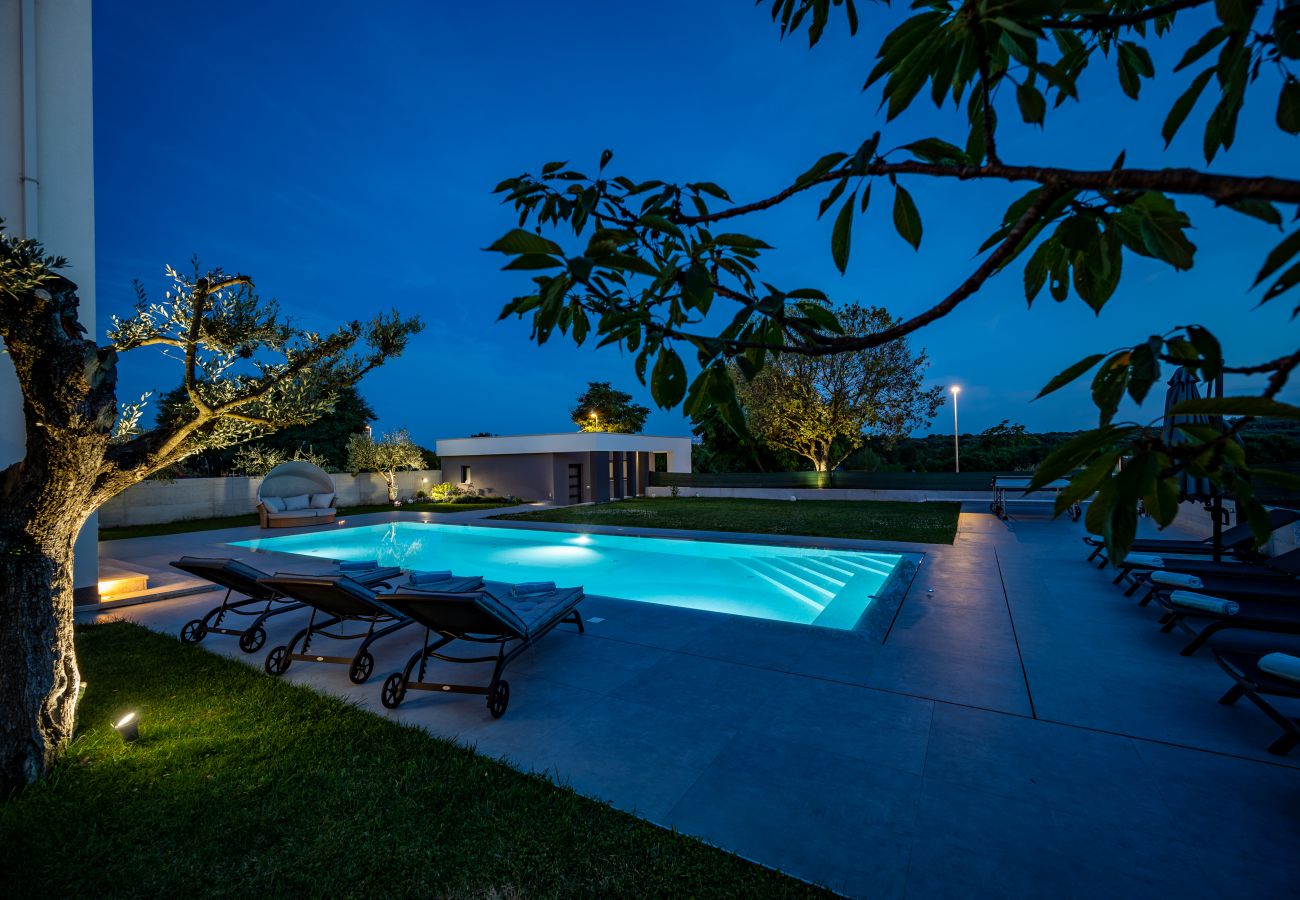 Villa Luen is a modern luxury villa near Pula. The villa can accommodate up to 11 people in 6 bedrooms on 2 floors. It has a fully equipped kitchen and dining area, as well as a comfortable living room. On the ground floor you will find three bedrooms, one with a double bed and two bedrooms each with a large single bed. There are also 2 bathrooms on the ground floor. There are three more bedrooms on the first floor. One of the bedrooms has two single beds and the remaining two bedrooms each have a double bed. The first floor bedrooms, which are furnished with a double bed, also have ensuite bathrooms. There is also another, separate bathroom.