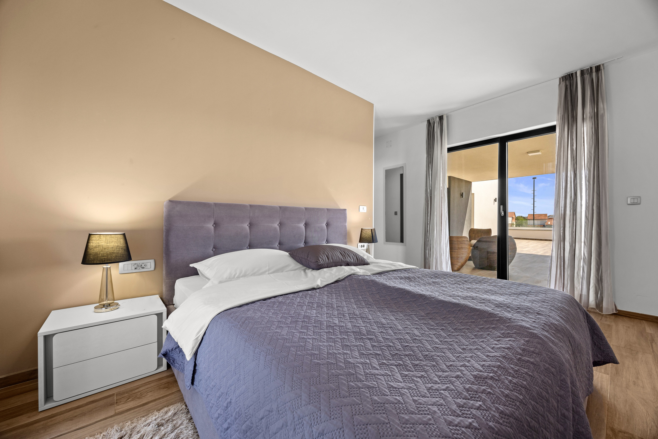 Villa Casa L can host up to 10 people, making it ideal for family vacations or groups of friends. It offers 4 bedrooms—two with double beds and two with double single beds. There is also a comfortable double sofa bed, allowing for 2 extra guests (the extra 2 guests are available for additional costs of 30 EUR per night / per person). The villa has 4 bathrooms, so everyone has space.