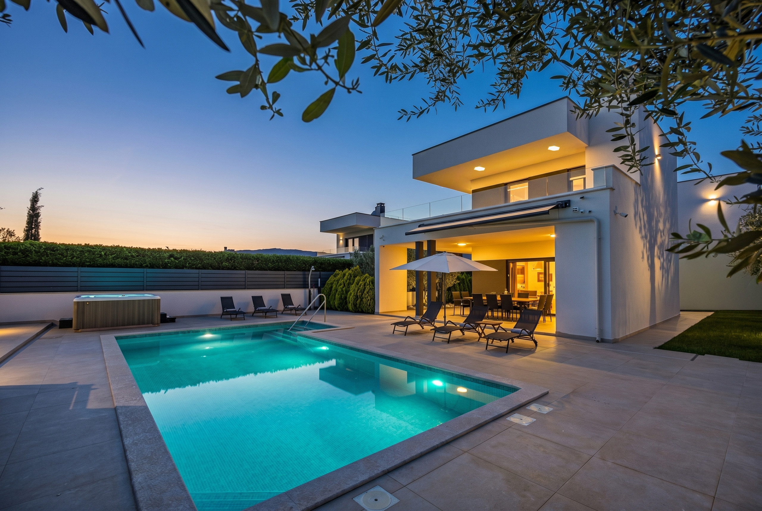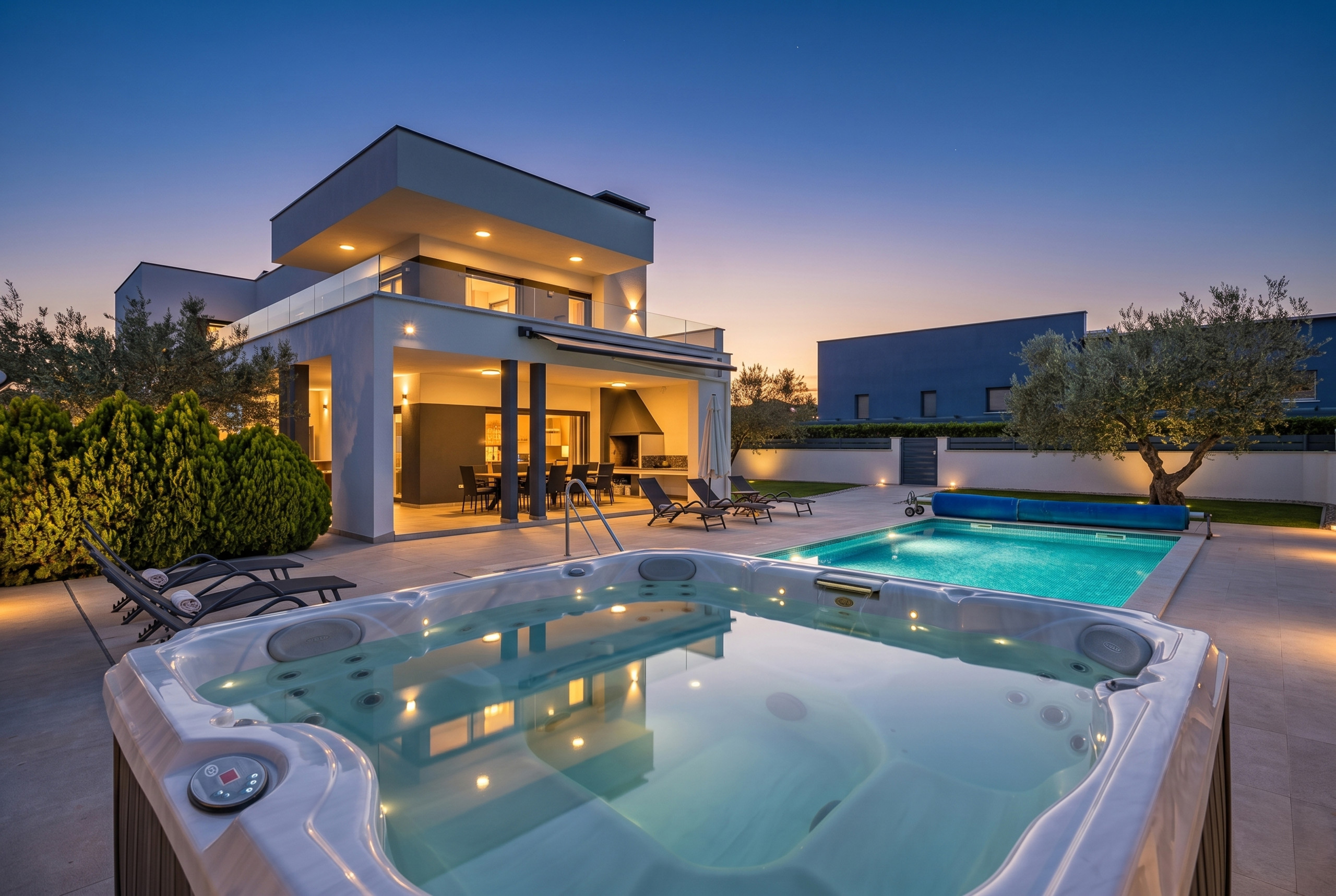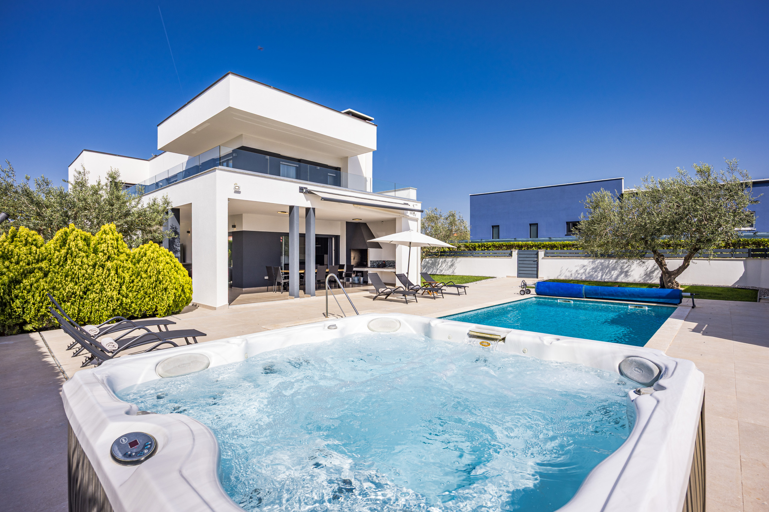 But here, too, the villa offers the perfect place to relax and just lie in the sun. In the outdoor whirlpool you can relax and experience romantic evenings.