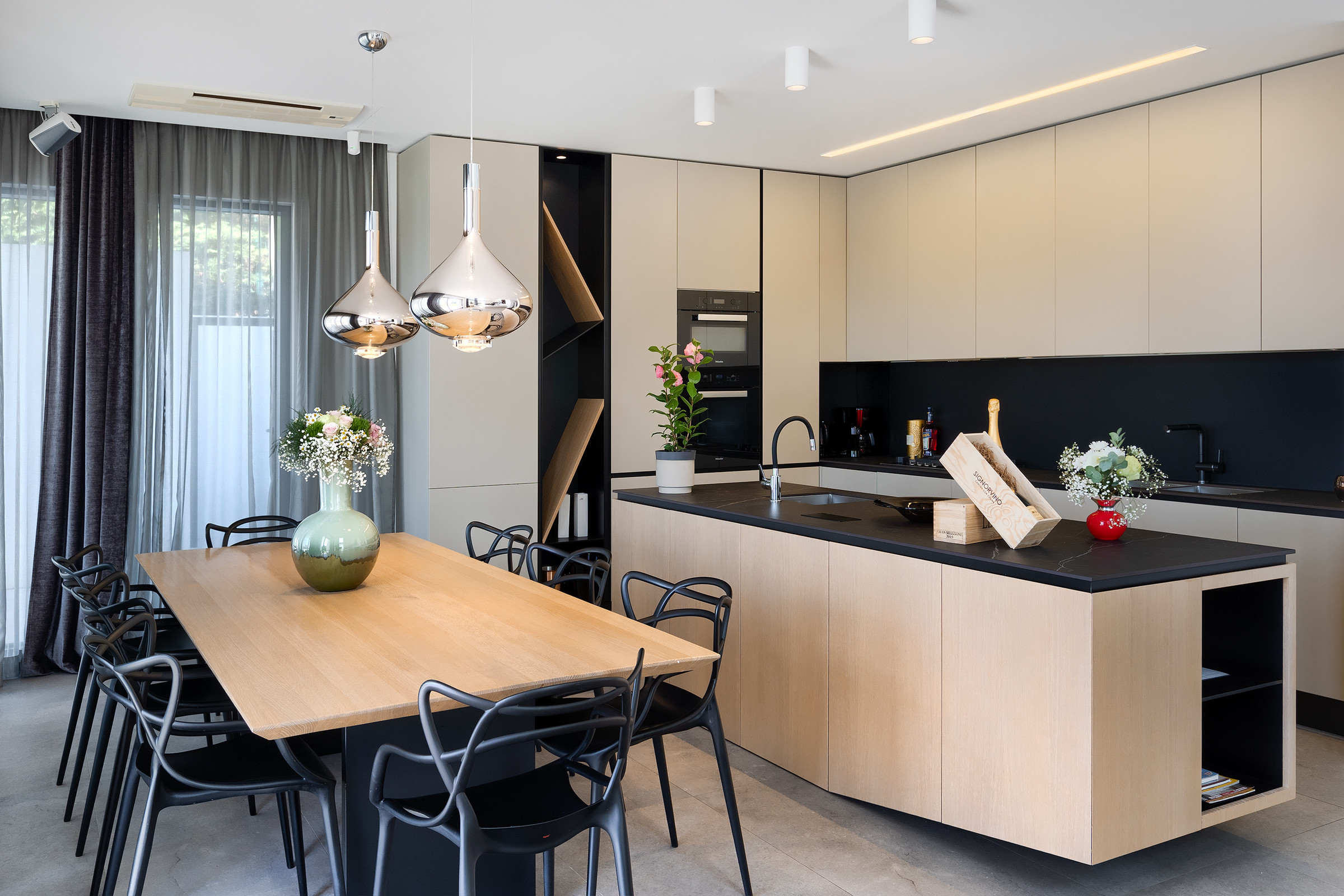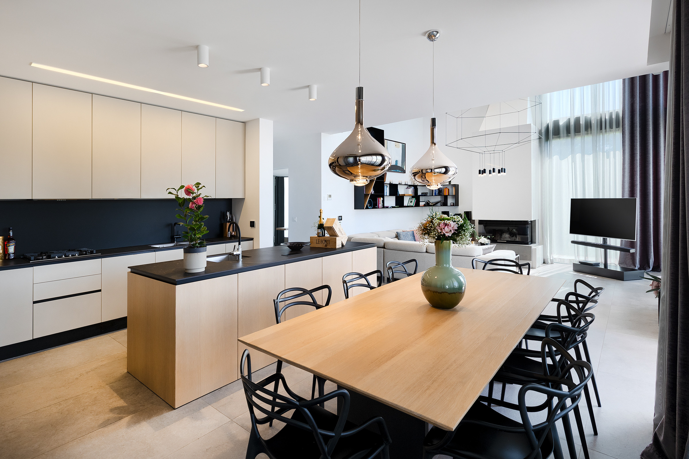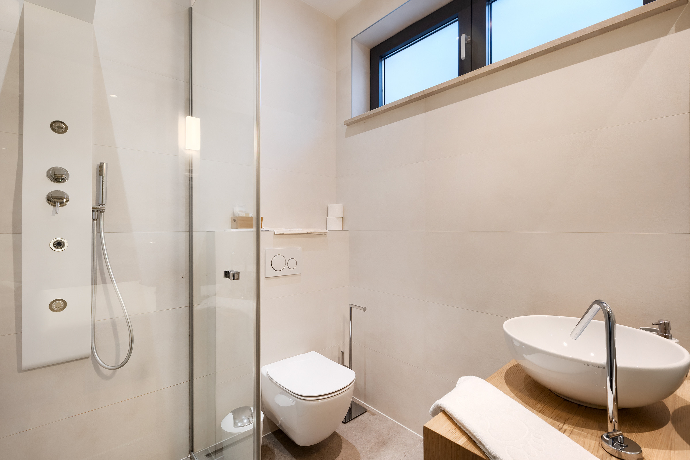 The villa offers 471 m² of interior space on a 3,700 m² private plot and comfortably accommodates up to 8 guests. It features 4 spacious bedrooms and 4 modern bathrooms with walk-in showers, one bathroom also includes a bathtub. In addition, there are 3 extra guest WCs throughout the villa. The villa is equipped with underfloor heating, ensuring comfort year-round.