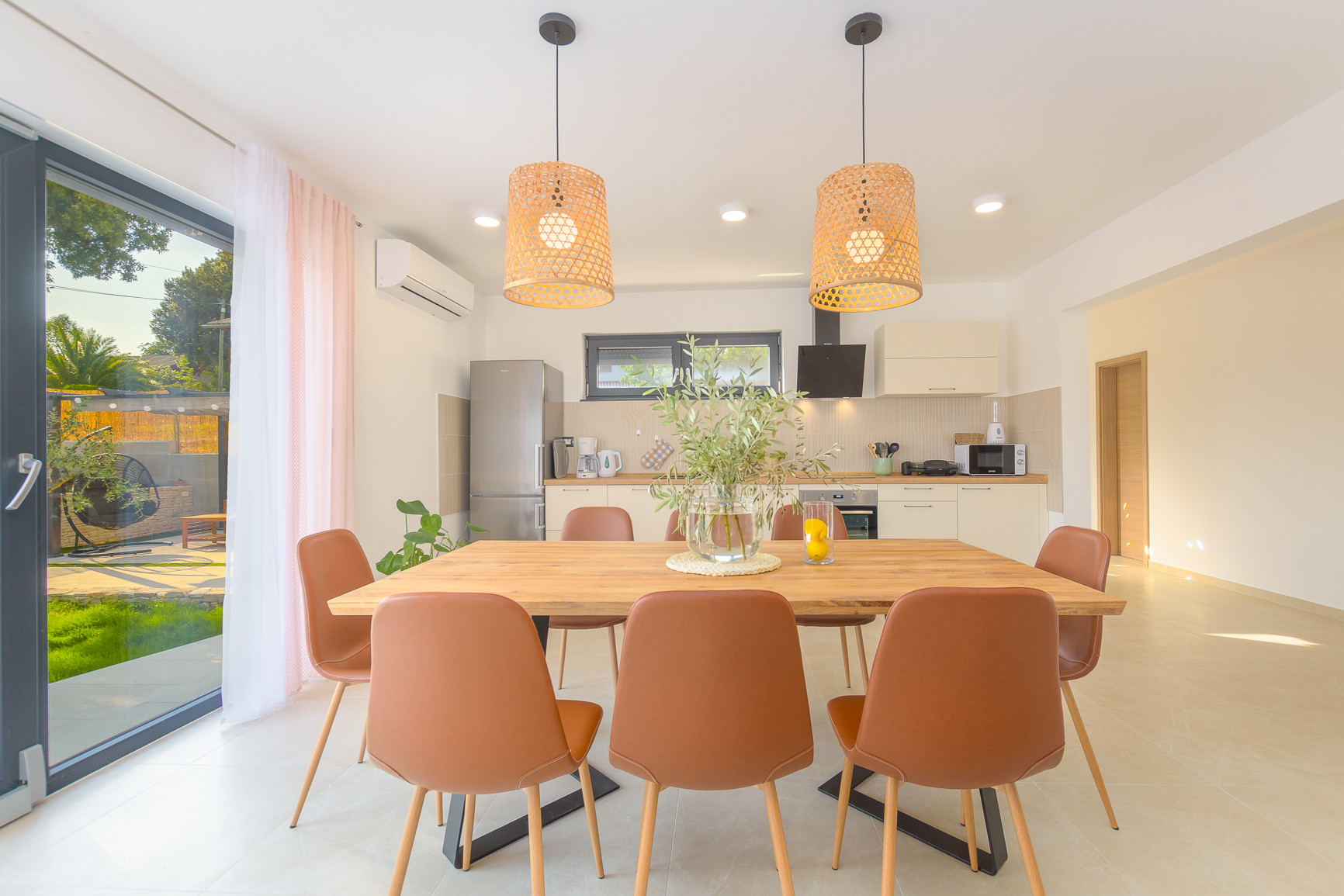 The villa can accommodate up to 8 people and offers everything for a relaxing holiday with your family and your dearest friends. Outside you will find a large private pool with sun loungers and a covered terrace with garden furniture, a barbecue and an outdoor dining area.