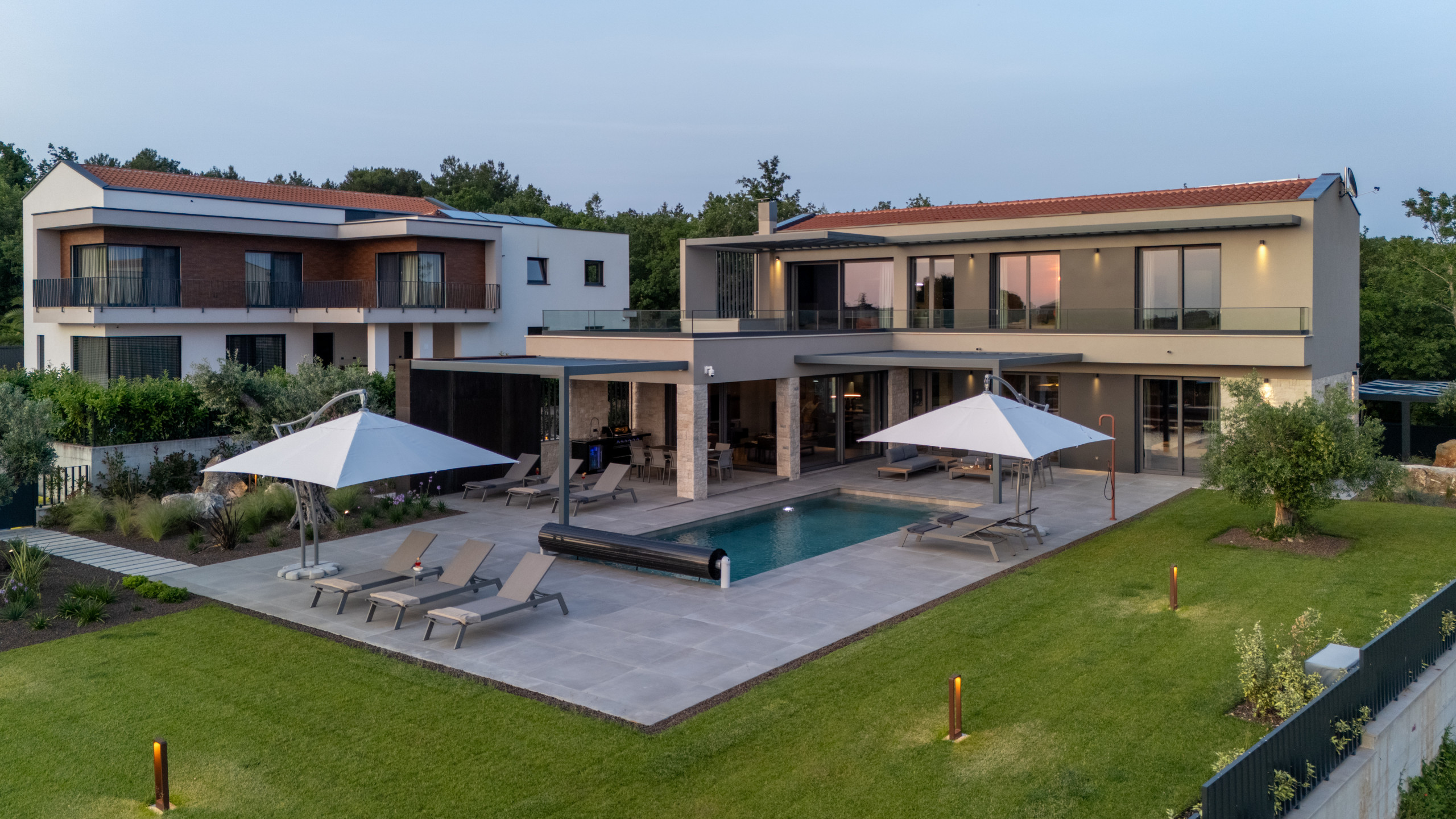 Nestled in the lovely village of Višnjan, just a short drive from the lively town of Poreč, Villa Sterpazzi is the perfect getaway for relaxation and fun. Surrounded by lush greenery, vineyards, and the charm of the Istrian countryside, it offers both tranquility and easy access to the Adriatic coast.