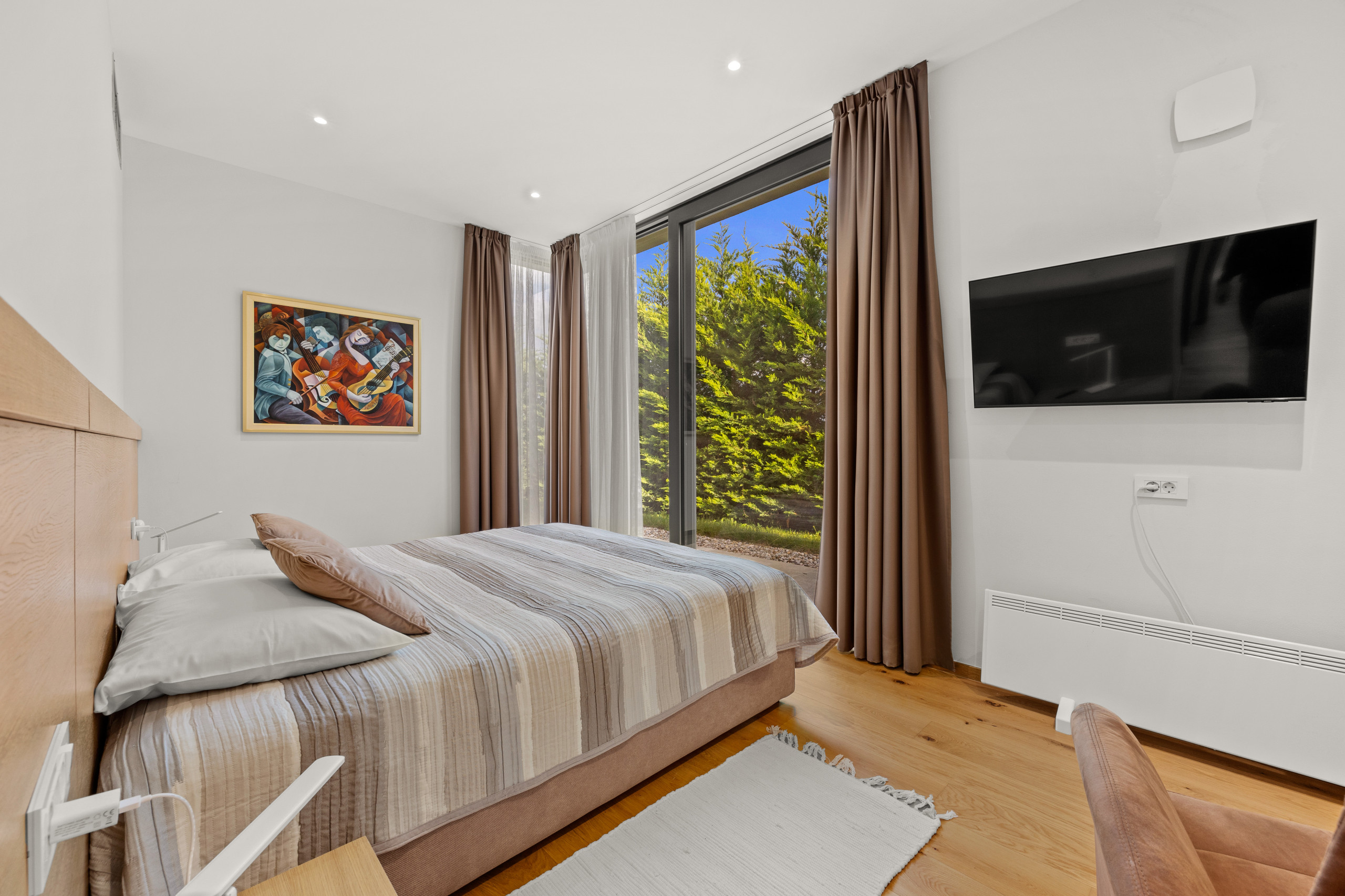 The large garden surrounding the villa is great for families and children. There’s a playground for kids, and for fun family activities, the villa offers board games, table tennis, and foosball. The outdoor area is perfect for dining, with a barbecue where you can prepare delicious meals and enjoy them in the fresh air.
