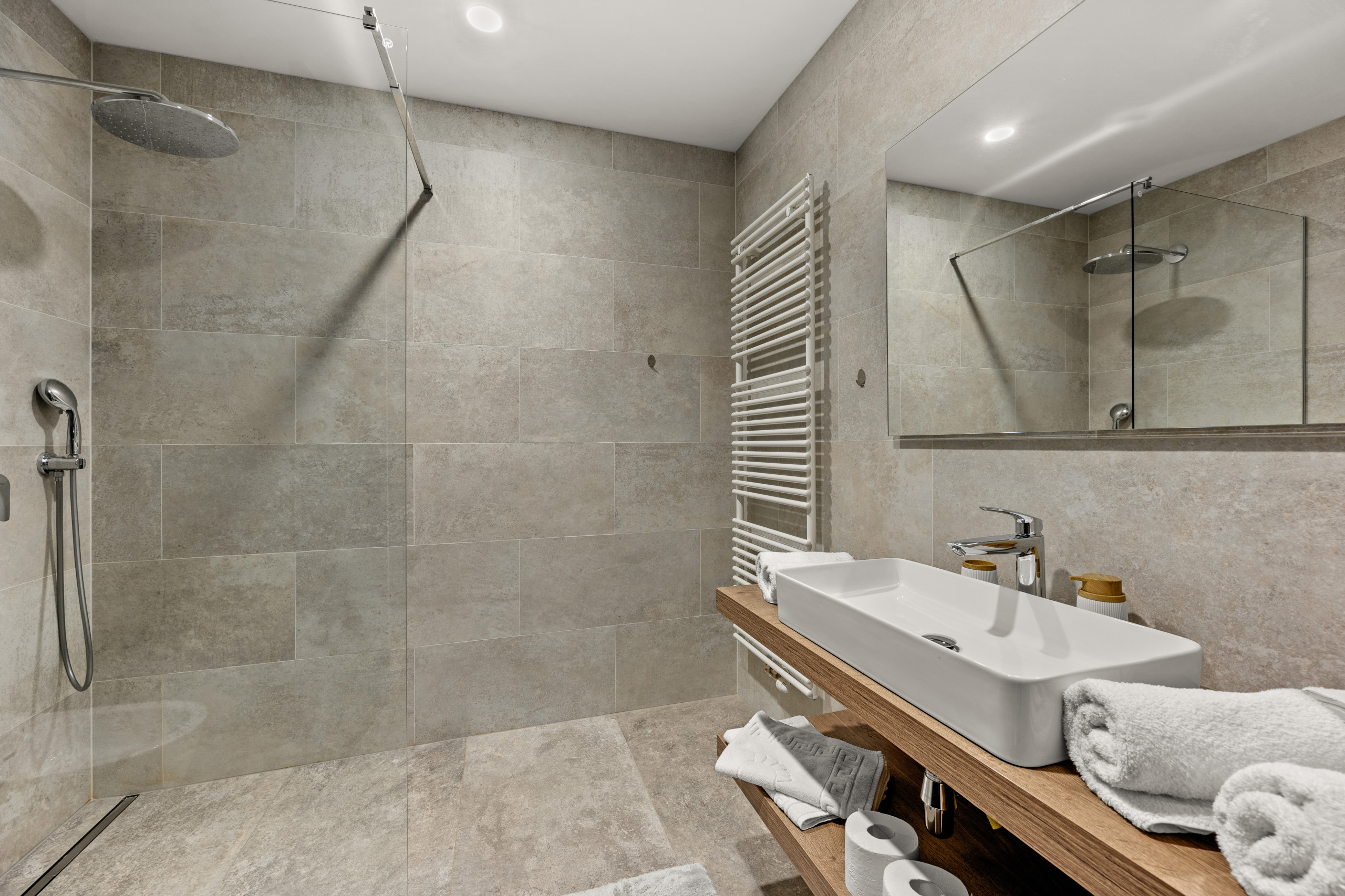 Guests can enjoy a 50 m² heated outdoor pool, a beautiful wellness area with sauna, jacuzzi, indoor counter-current swimming pool, and shower.