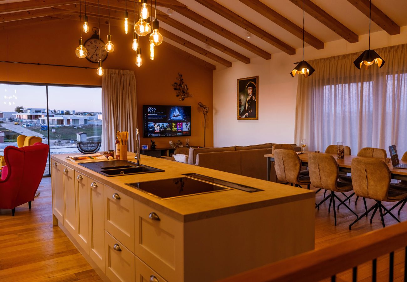 The large garden surrounding the villa is great for families and children. There’s a playground for kids, and for fun family activities, the villa offers board games, table tennis, and foosball. The outdoor area is perfect for dining, with a barbecue where you can prepare delicious meals and enjoy them in the fresh air.