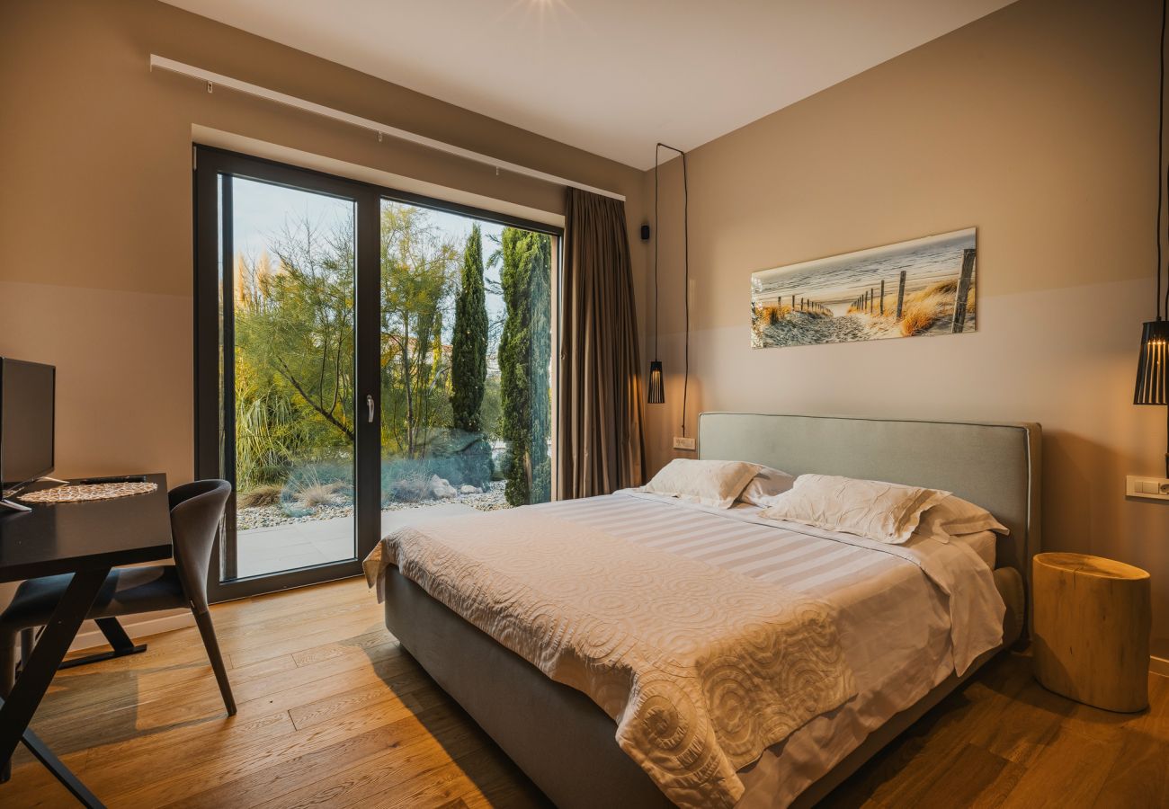 The modern and elegant Villa Vigneto is located in Brtonigla. Thanks to the location near Umag, Novigrad and Poreč, Villa Vigneto really offers you the best of the best. The nearest beach is 7km away from the villa. Experience Istria and spend an unforgettable vacation in Villa Vigneto!