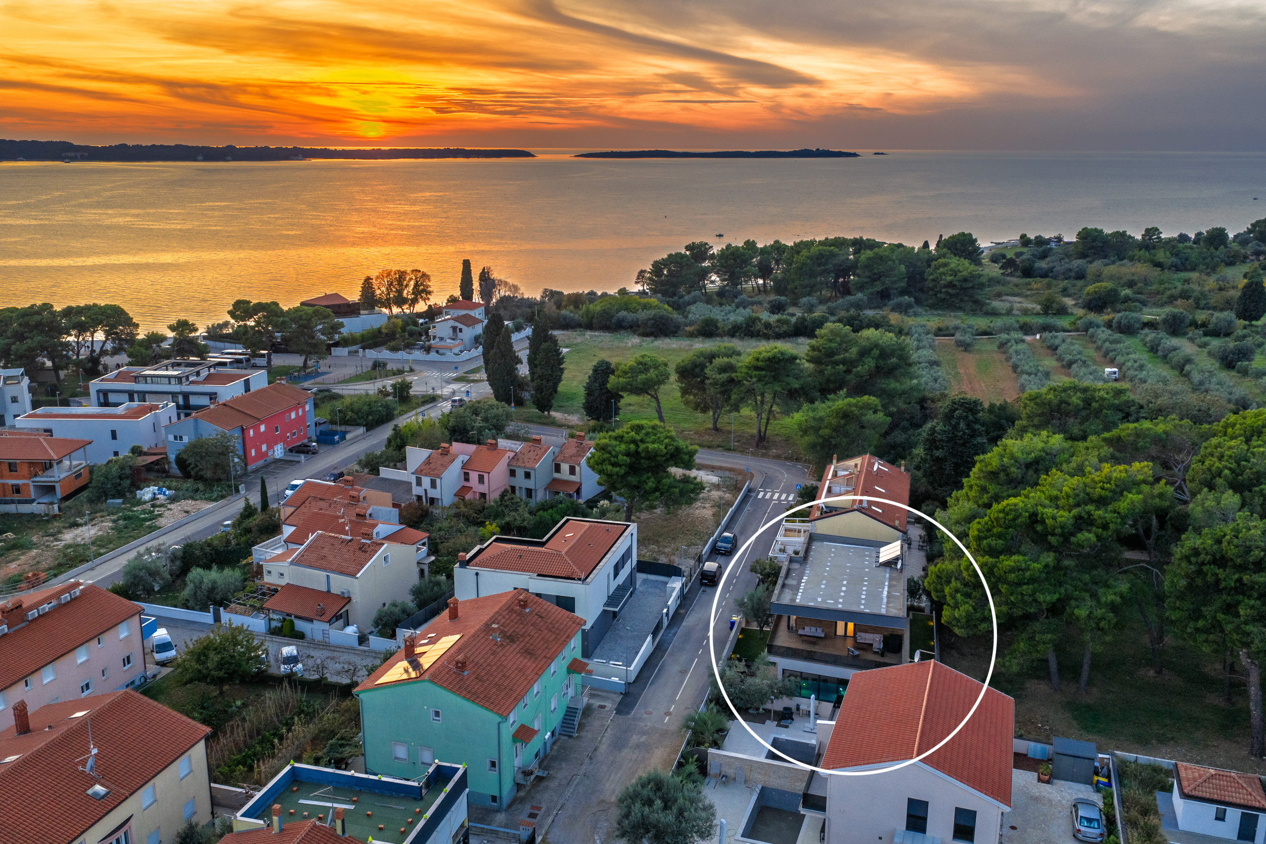 Dream of a relaxing vacation in a charming seafront villa with modern design and wonderful views of the blue sea. Villa Bellatrix offers everything you could wish for. A relaxing vacation for a total of 8 guests in Fažana on the western coast of Istria. Entering the ground floor of the magnificent villa, a large living room awaits you, furnished with lots of wood and warmth with chic details. A lot of light and large glass windows characterize the villa and give it a very special flair.