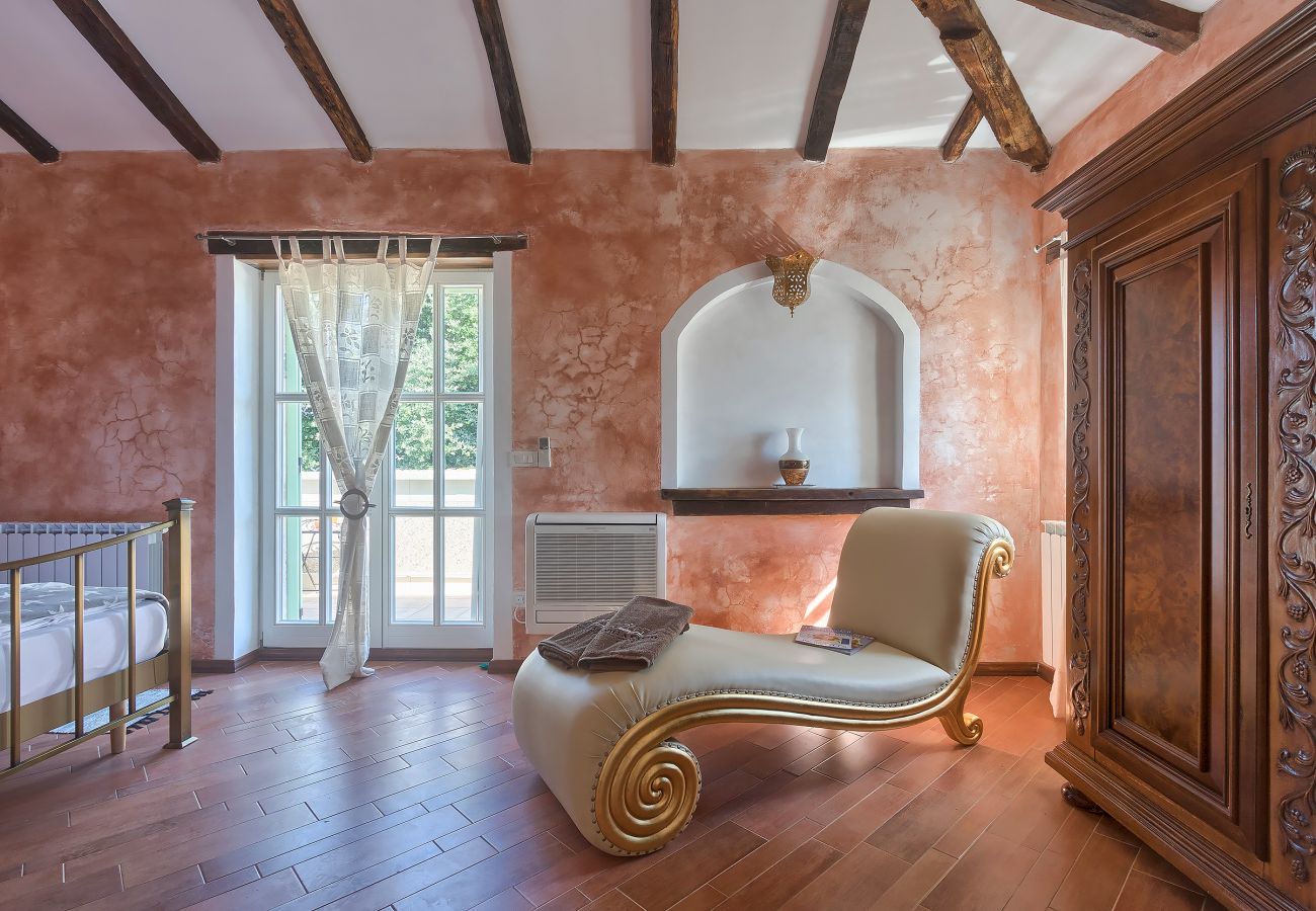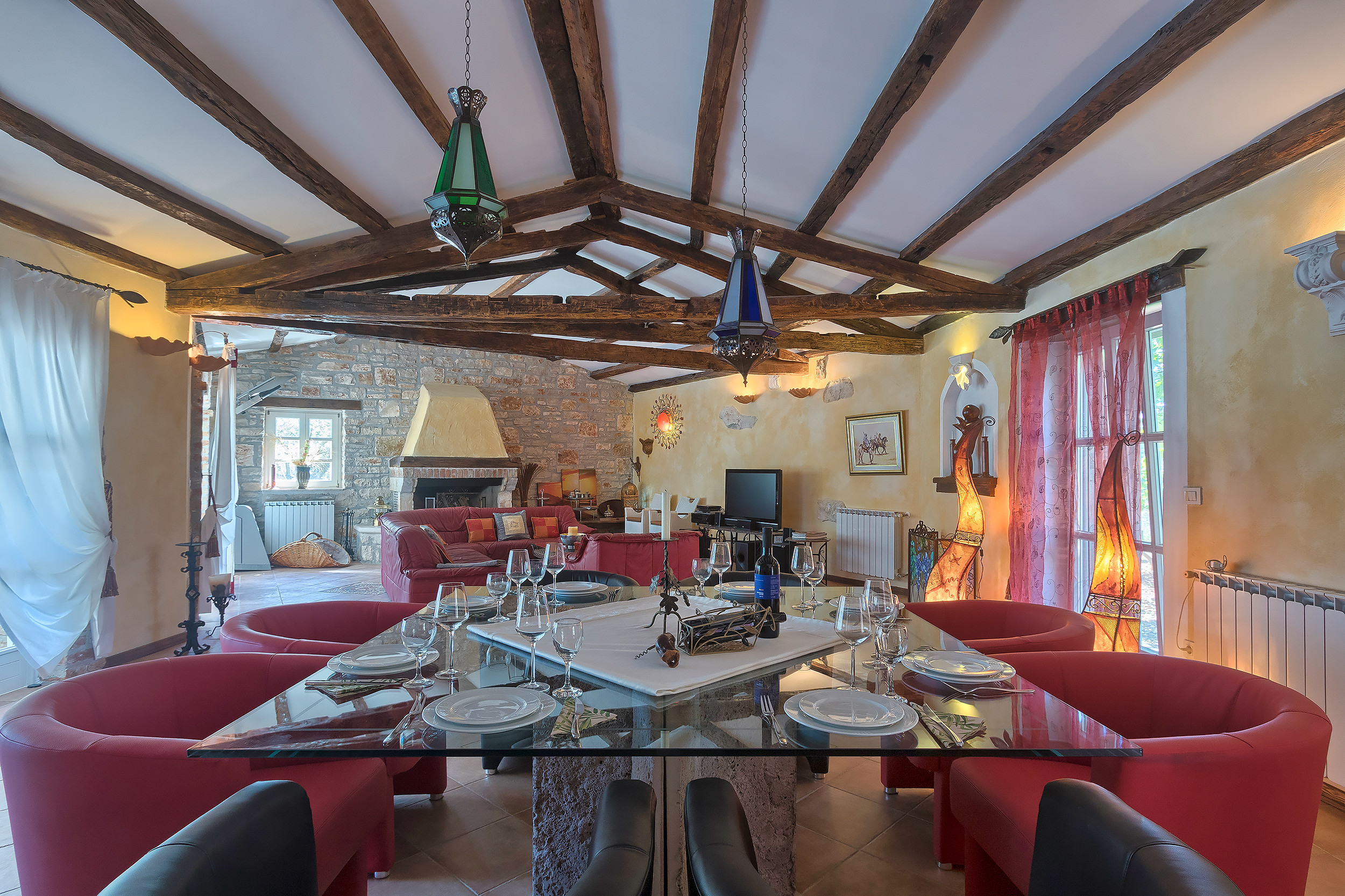 Inviting and cozy - these words accurately describe Villa Karim. It is an Istrian stone house in a quiet location that has been completely restored and yet has lost none of its charm. Up to 8 people can spend a wonderful holiday here. From the entrance area you go directly into the spacious open living and dining area with a rustic kitchen. The wooden ceilings contrast with the light stone and the warm lighting create a cozy atmosphere. A feeling like home - make yourself comfortable on the cozy sofa and enjoy the soothing warmth of the fireplace on cool summer evenings. You will find restful sleep in a total of 3 bedrooms with double beds. There are also two bathrooms, one of which has a comfortable bathtub. The outside area of the villa is at least as inviting as the inside. The villa has a large terrace with charcoal grill and very nice dining area. You can swim undisturbed in the private pool and enjoy the view of the villa with its lovely light blue shutters and the well-kept garden. You can then relax on the sun loungers in the shade of the parasols. Do you like reading? There is a hammock in the garden that literally invites you to read an exciting book. Relax and collect beautiful holiday memories. The villa is located in a small village Jehnici near the town of Porec. On the one hand, the quiet location allows you to have a relaxing and quiet holiday in the middle of nature and close to the sea. On the other hand, you can spend your free time in the city of Porec and visit the sights or explore the city's cultural and entertainment program. If you prefer an active holiday, the beautiful Istrian coast with its numerous bays and small islands is perfect for water sports activities, but you can also take an active trip through Istria on hiking and cycling trails.