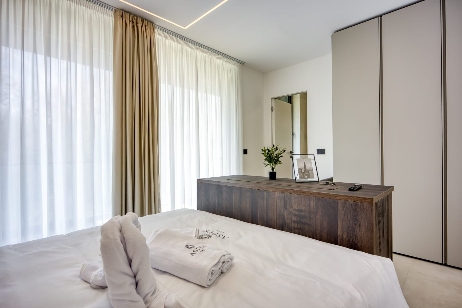 As a modern smart villa, Villa Asper features atmospheric ambient lighting throughout the property and an integrated Denon indoor and outdoor audio system, allowing guests to enjoy music seamlessly in both interior and exterior spaces. For entertainment and convenience, the villa also offers a PlayStation 5.