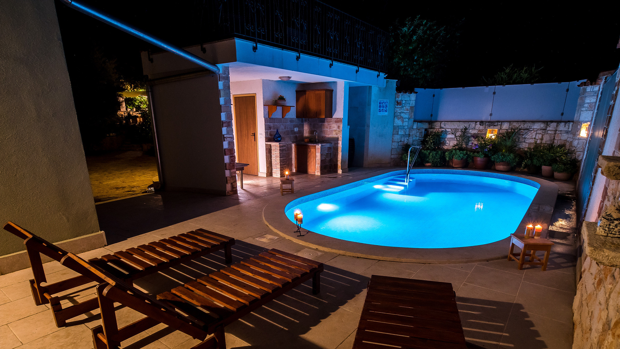 If you are looking for a relaxing family vacation, Casa Menta is the perfect choice. This charming villa is located in the village of Marcana, near the historic city of Pula. Casa Menta can accommodate 6 people, it has 2 bedrooms and 3 bathrooms, one of the bathrooms has a bathtub with massage jets. You can also enjoy the romantic aroma garden, which promises you many happy hours. You can expect absolute peace and relaxation. The pool also invites you to refresh yourself and splash. There is also an open playground for children nearby.