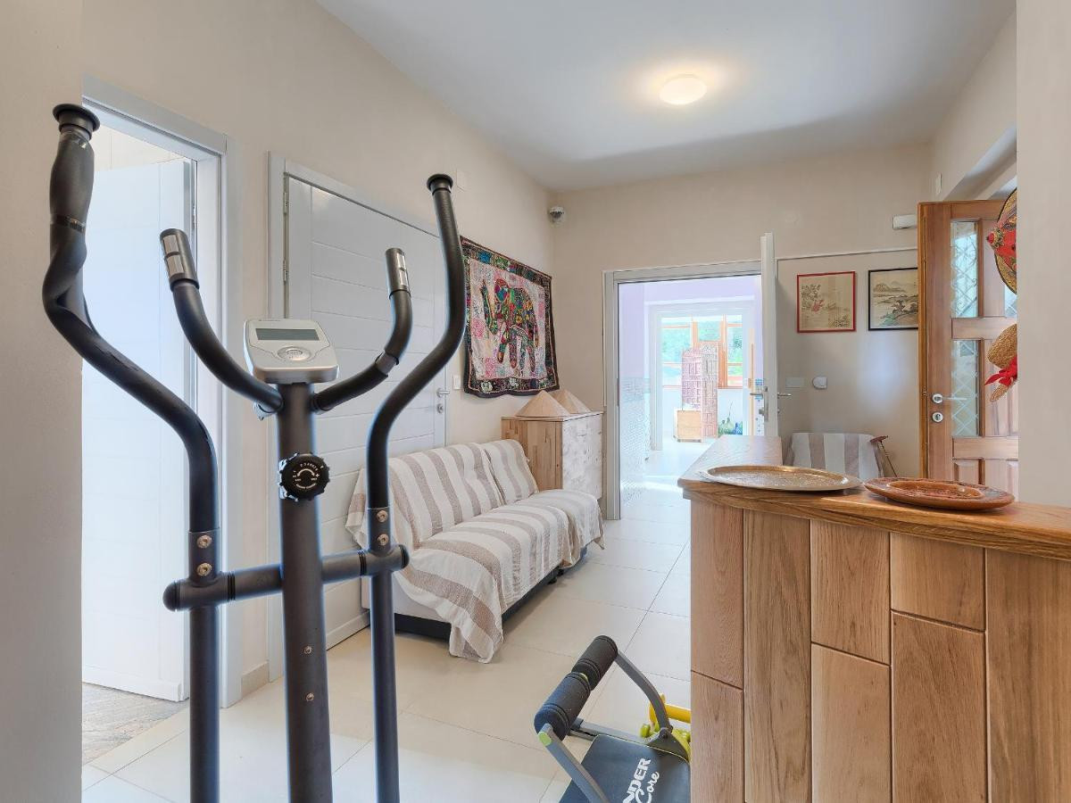 The villa has both indoor and outdoor dining areas, each with space for 10 people. Outside, you will find a 32 m² salt-water pool, perfect for sunny days. Next to the pool is a charcoal barbecue, ideal for cooking and enjoying meals together.