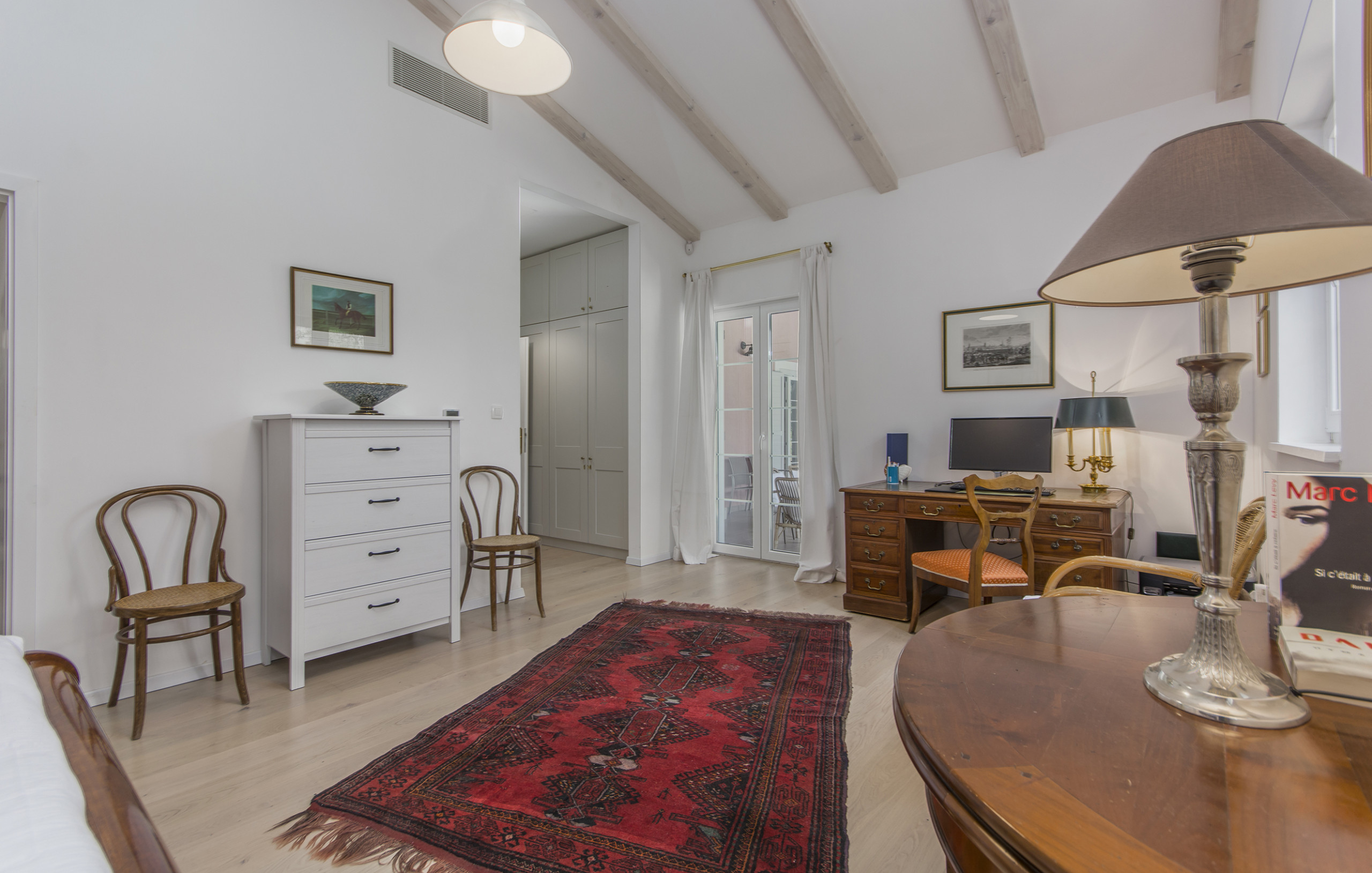 Outside, you will find a large swimming pool (12x5.5 m) and a big private parking lot. The villa has a living area of 300 m². The large, covered terrace has an outdoor dining area and a comfortable sofa group in the shadow. The garden covers over 4000 m² of land and provides plenty of space for tanning around the pool.